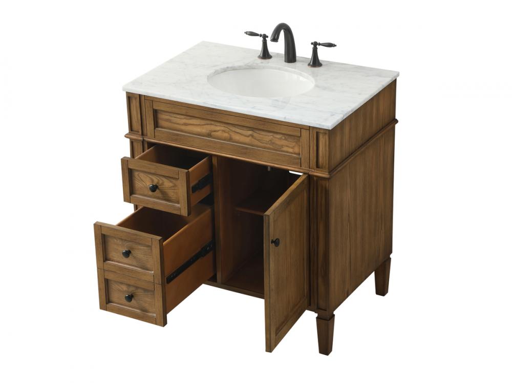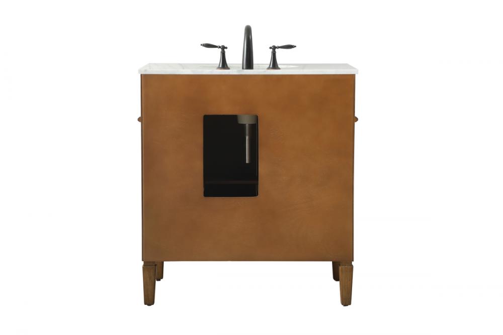 From its carrara white marble top to its handpainted cabinet, it is sure to make a splash in your bathroom. Beneath its natural stone marble top is a round white porcelain undermount sink. A removable shelf, for storing all your bathroom essentials. Convenient open back panel for hassle free installation access.