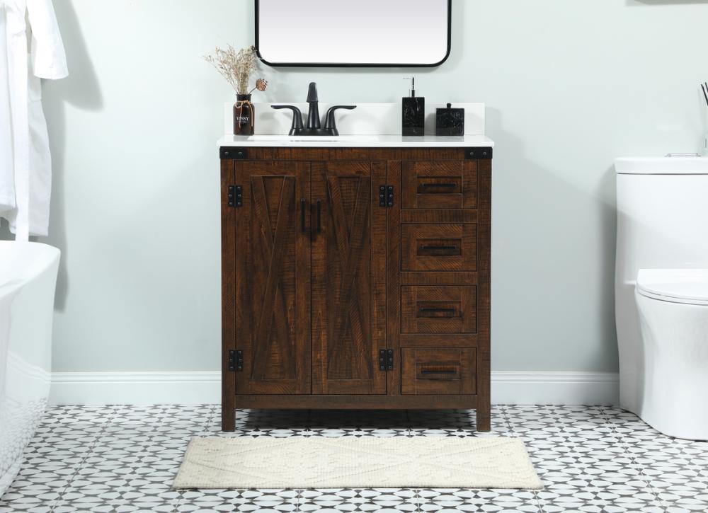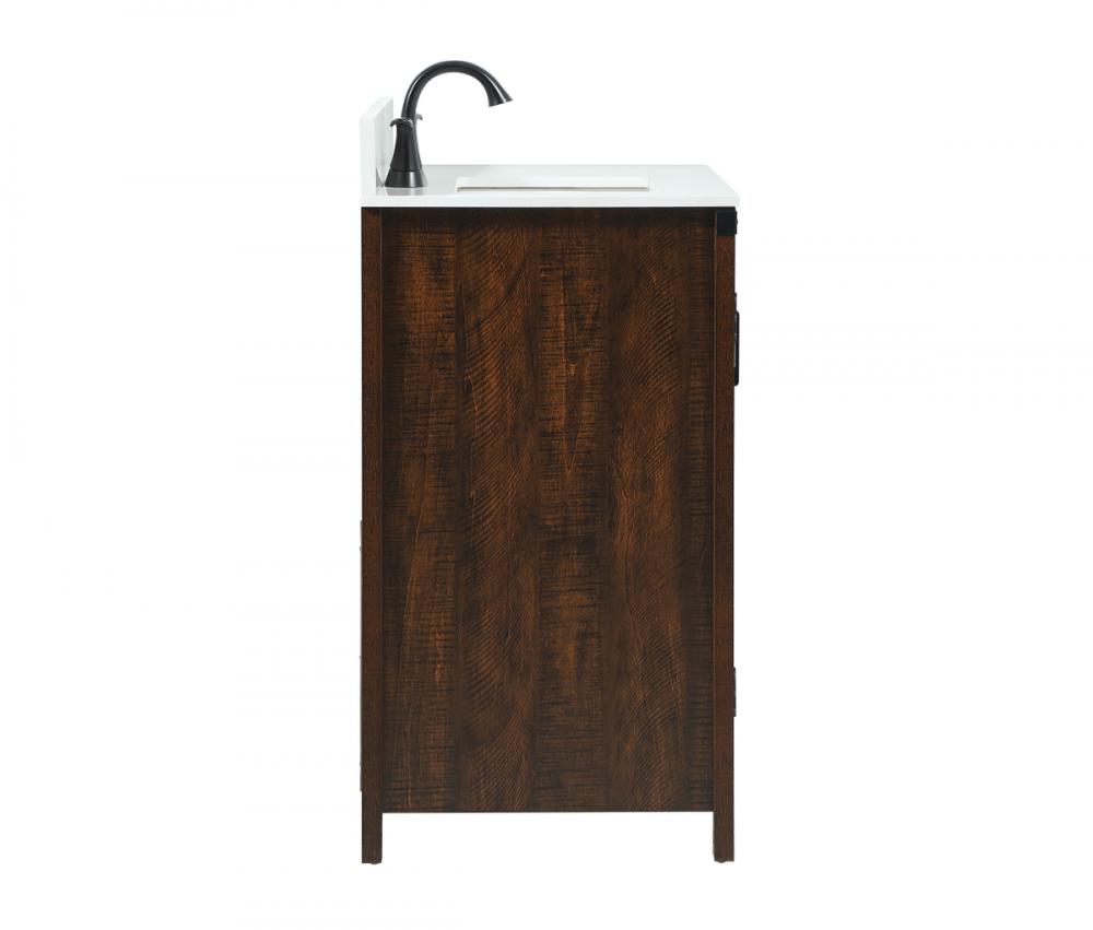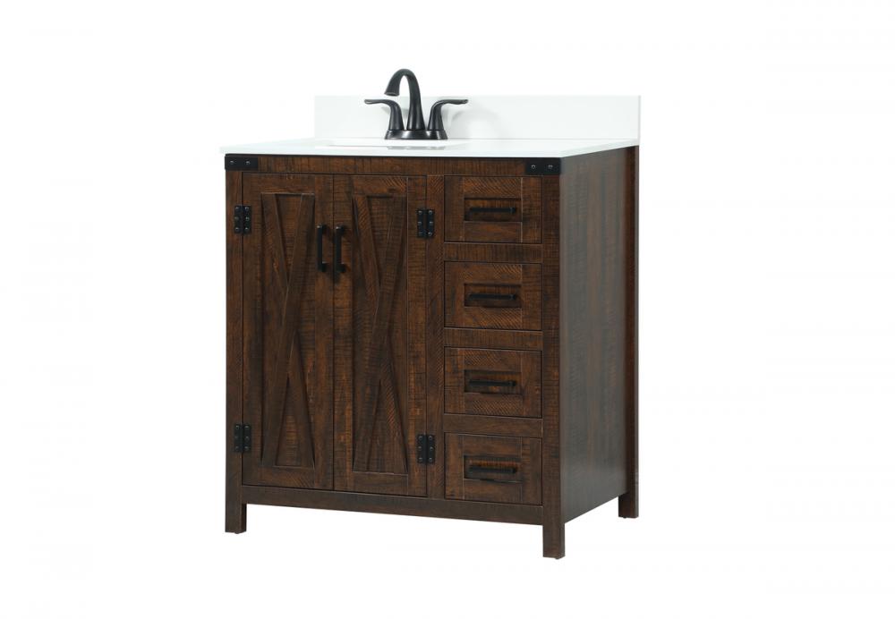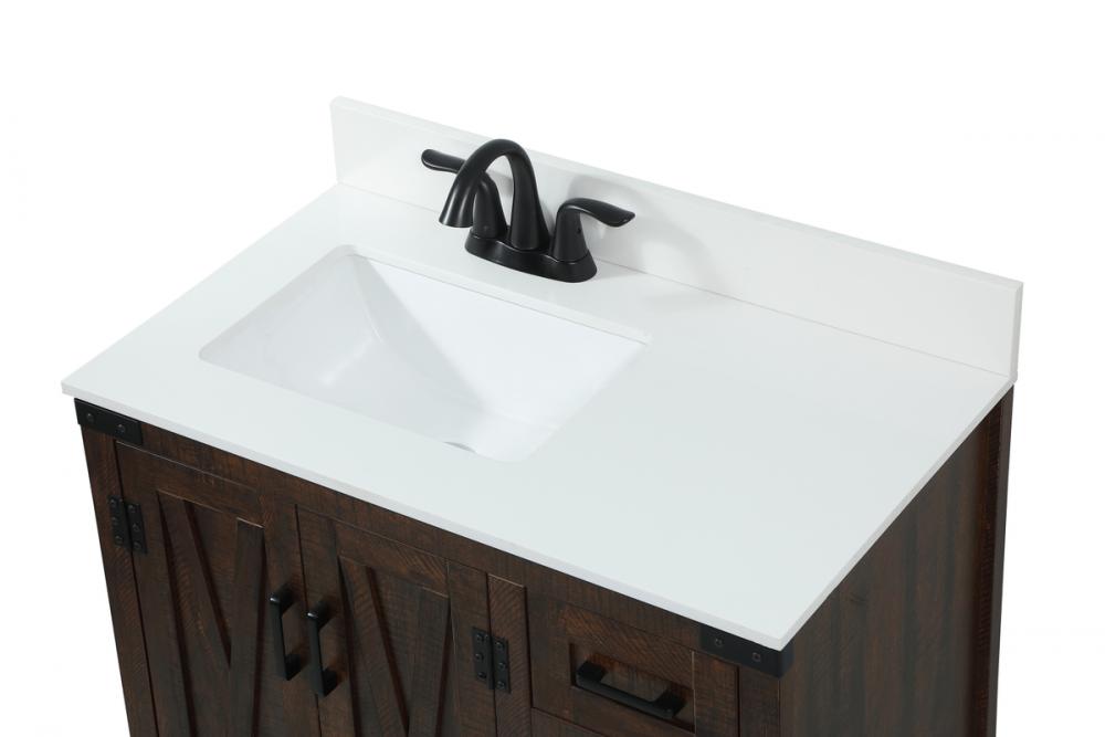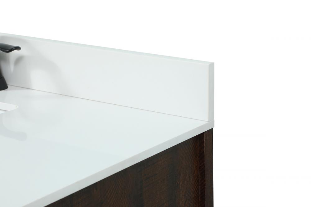 Reminiscent of barn doors, the two door cabinet and four drawers adds both stylistic charm and function with its plethora of storage options for all your bathroom essentials. Whether for your bathroom or the guests', everyone will marvel at its classic look for traditional and farmhouse aesthetics. A slab of engineered marble rounds out the piece up top, as well as the porcelain under mount sink and predrilled faucet holes. This vanity arrives fully assembled. Comes with a matching backsplash to complete the look and protects your wall.