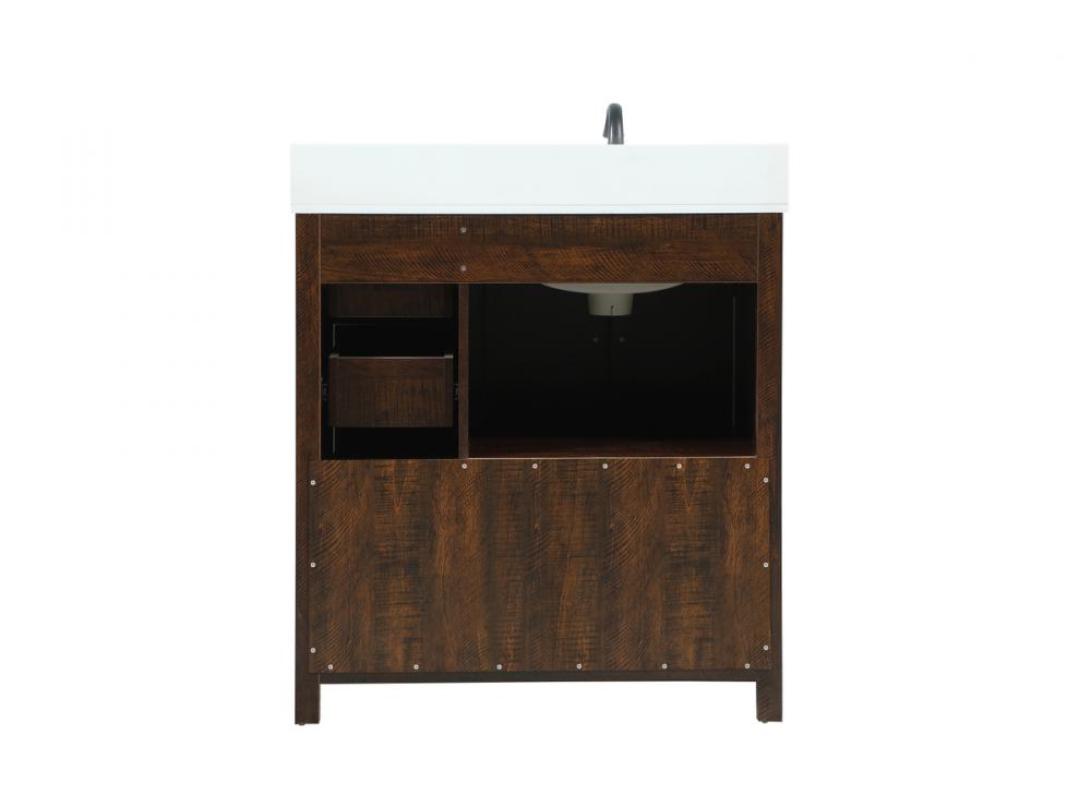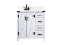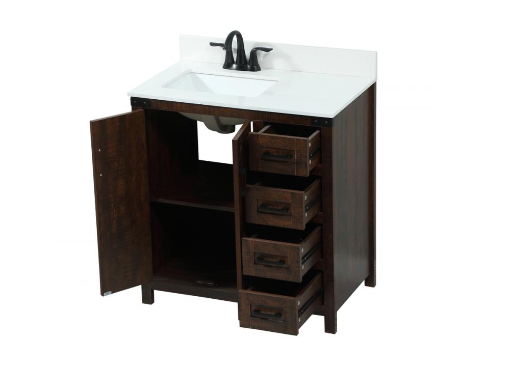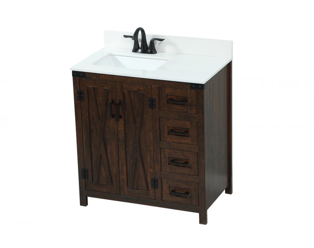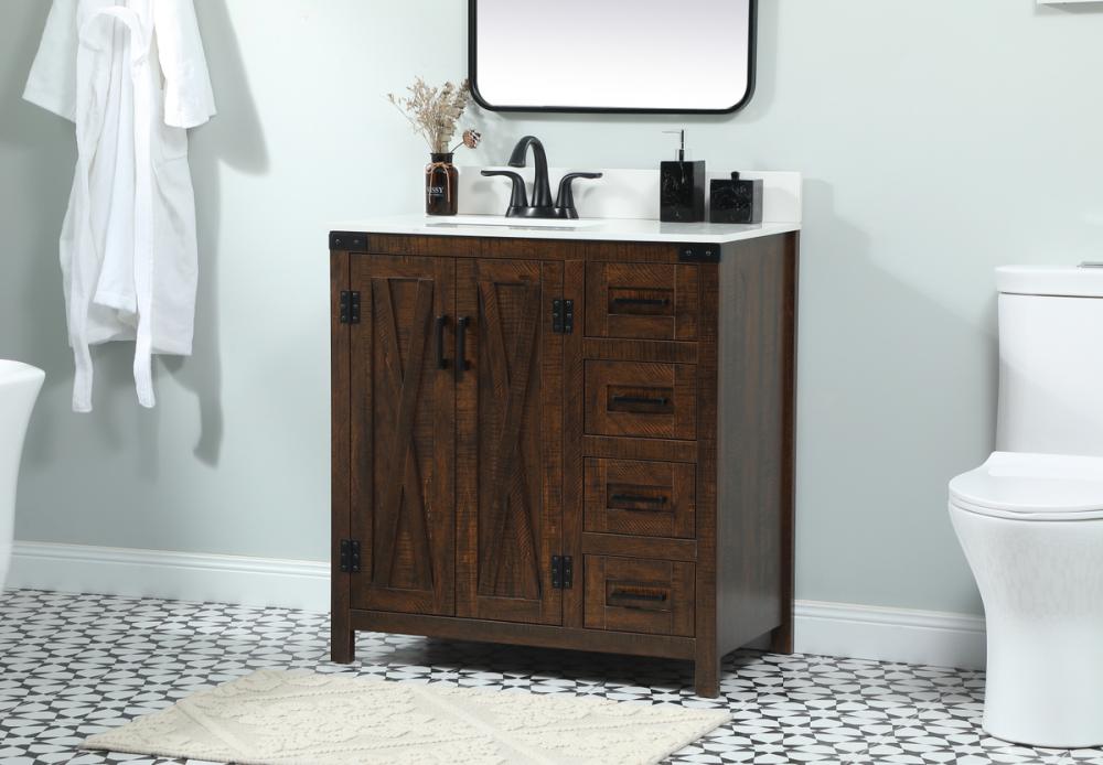 Reminiscent of barn doors, the two door cabinet and four drawers adds both stylistic charm and function with its plethora of storage options for all your bathroom essentials. Whether for your bathroom or the guests', everyone will marvel at its classic look for traditional and farmhouse aesthetics. A slab of engineered marble rounds out the piece up top, as well as the porcelain under mount sink and predrilled faucet holes. This vanity arrives fully assembled. Comes with a matching backsplash to complete the look and protects your wall.