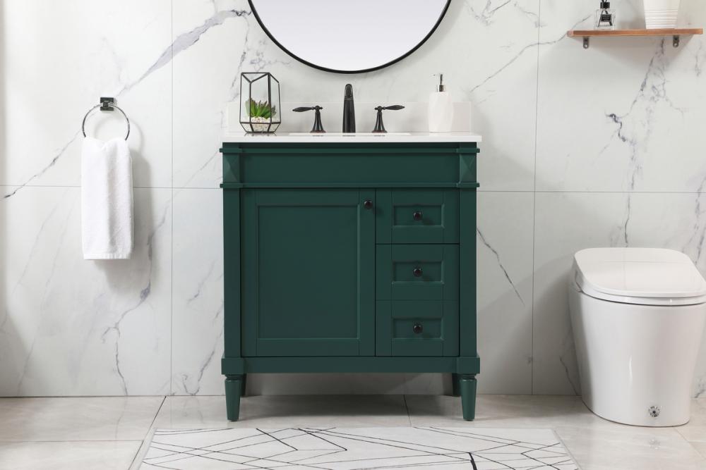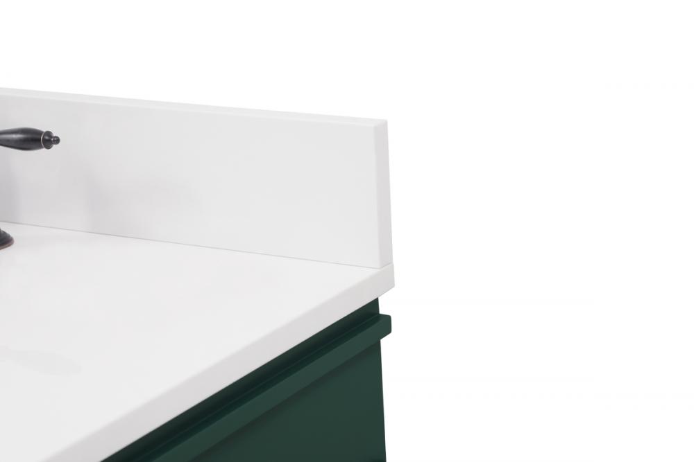 This transitional vanity is a beautiful piece of bathroom furniture will look amazing in your design scheme. The cabinet features a shaker style smooth door panel with simple round knobs and soft close hinges provide ample room for accessories. Packed with multiple side drawers with soft close glides for added comfort and full access to bath supplies. Convenient deep drawer stores all of your tall bath essentials. Constructed of engineered wood and solid wood legs with hand painted finish. The durable engineered marble countertop is a versatile material in an ivory white finish. Minor assembly of the legs needed to get this vanity up and running. Comes with a matching backsplash to complete the look and protects your wall.