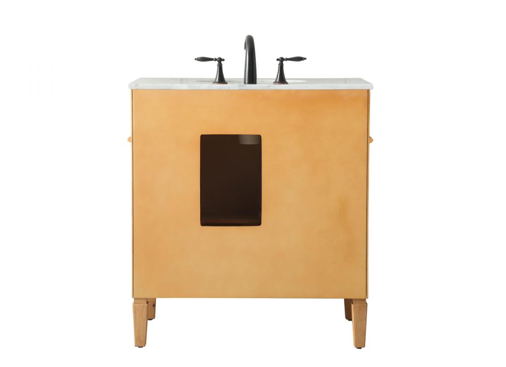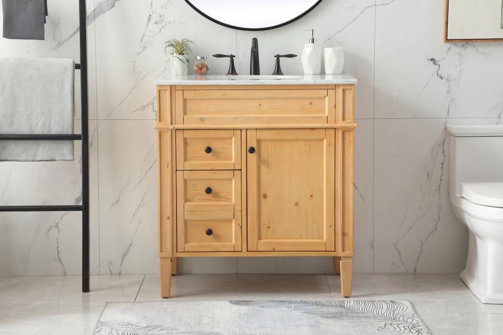 From its carrara white marble top to its handpainted cabinet, it is sure to make a splash in your bathroom. Beneath its natural stone marble top is a round white porcelain undermount sink. A removable shelf, for storing all your bathroom essentials. Convenient open back panel for hassle free installation access.