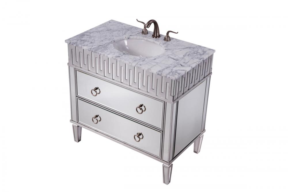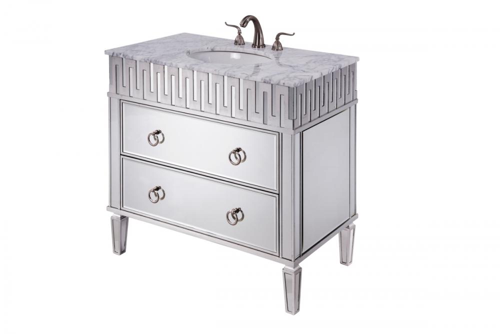 Our unique “nouveau” vanity brings together the best of contemporary styling and functionality to your home or office bathroom, design with authentic white marble, top-grade mirrors, hand-rubbed silver finish, brushed steel knobs