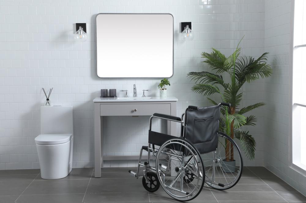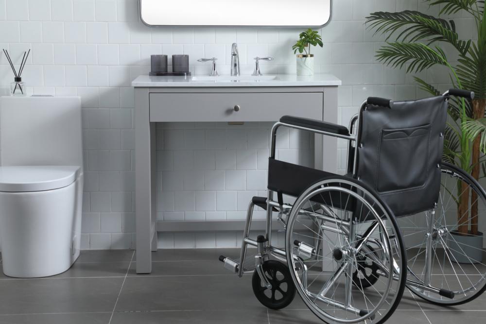 The sink vanity is thoughtfully crafted to accommodate wheelchair access, promoting inclusivity in your bathroom space.