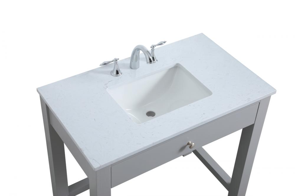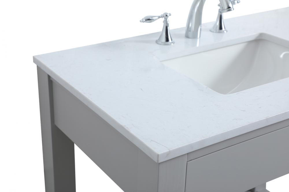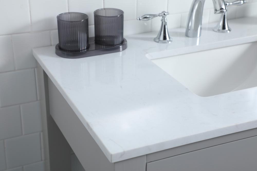 The vanity boasts a luxurious Calacatta look engineered marble stone top, combining timeless beauty with durability. This premium material adds a touch of opulence to your bathroom while combating to the rigors of daily use.