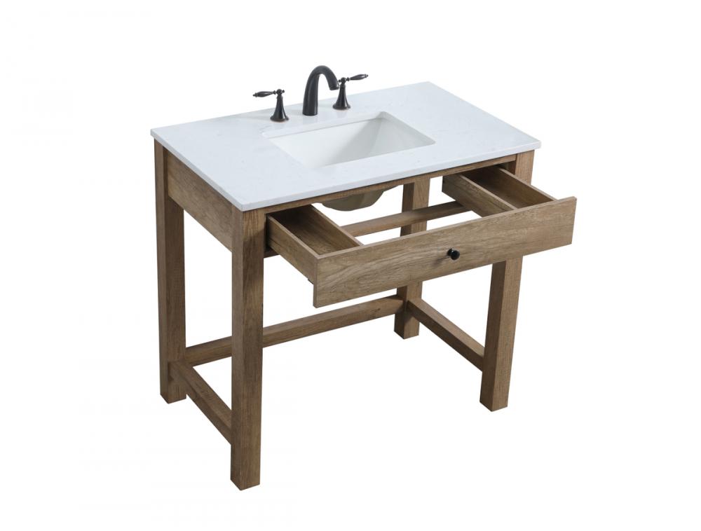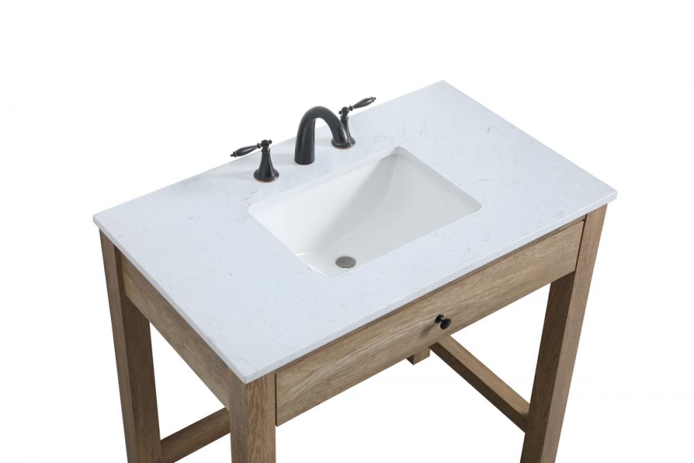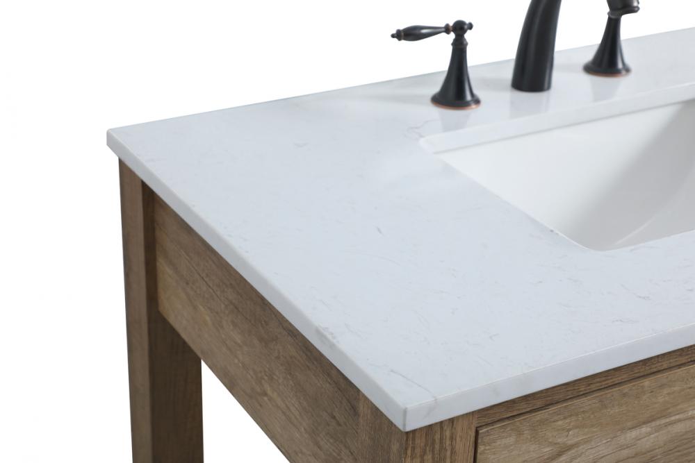 The vanity boasts a luxurious Calacatta look engineered marble stone top, combining timeless beauty with durability. This premium material adds a touch of opulence to your bathroom while combating to the rigors of daily use.