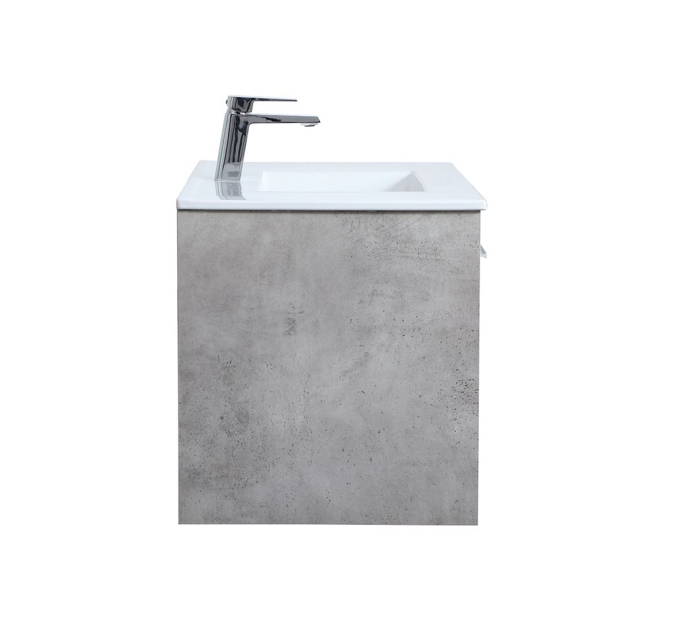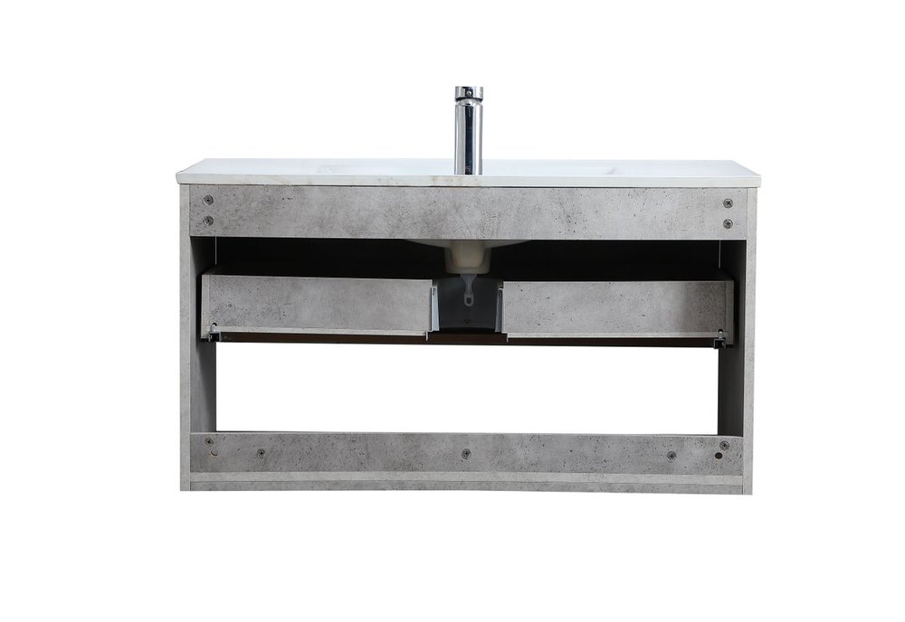 Save space and make your bathroom appear bigger with this 36" floating vanity in a concrete grey finish. Its minimal design will have you in awe, while its clean lines will leave your room feeling fresh and uncluttered. The Single u-drawer pulls out for storage while the open space below allows you to place extra towels or various other essentials.