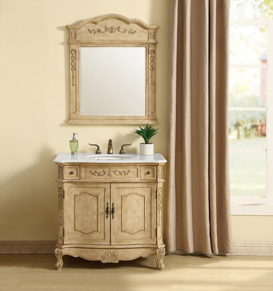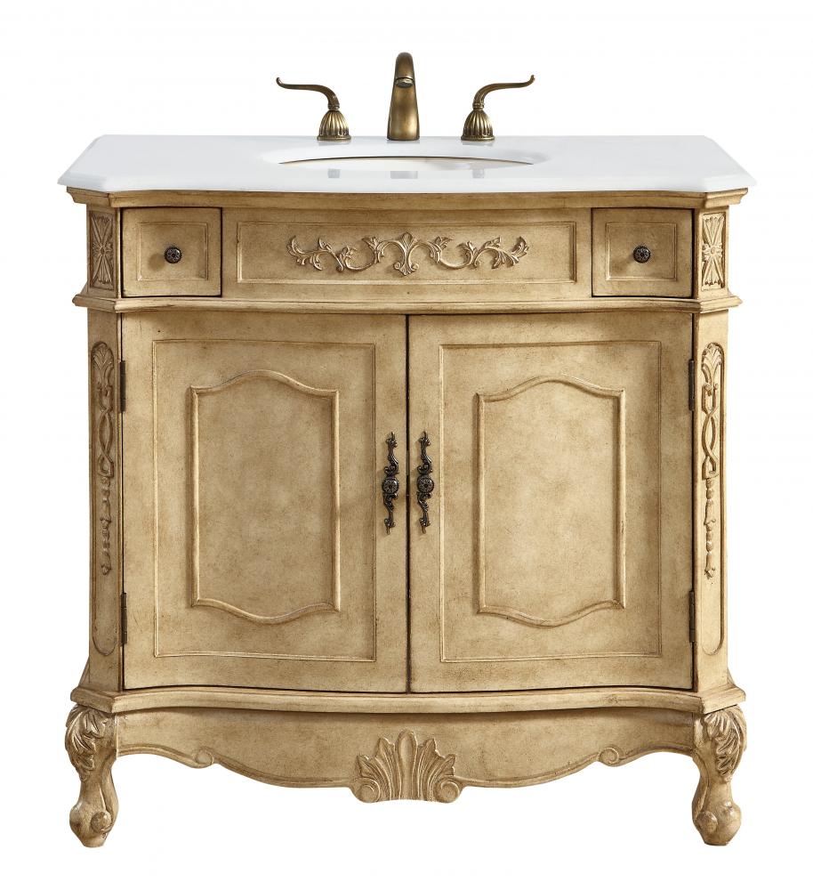 36 inch Single Bathroom vanity in Antique Beige with ivory white engineered marble