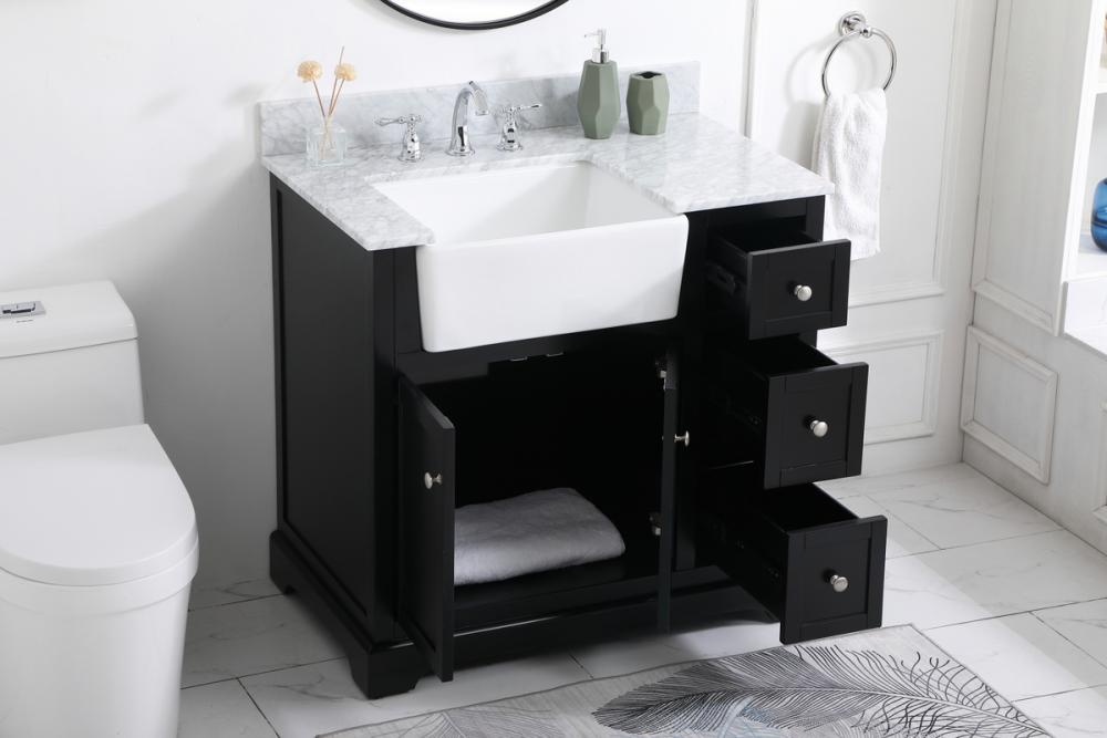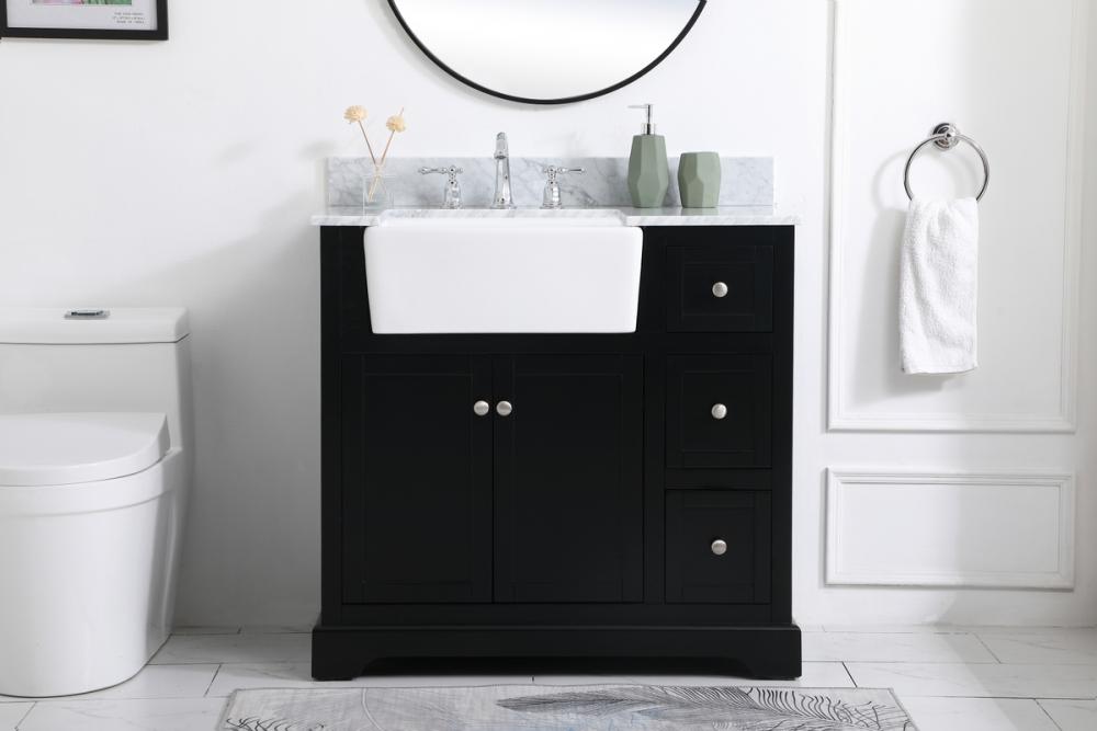 36 inch Single bathroom vanity in black with backsplash