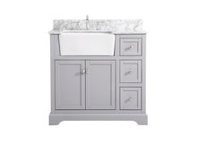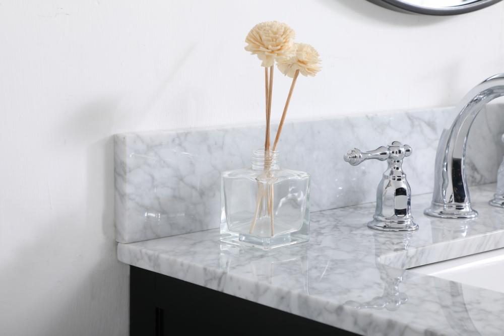 Make the most of your space with this farmhouse style bathroom vanity. Complements well with its beautiful finish, carrara white marble countertop, and the contemporary slender handle bar that sits on the functional drawers with soft closing mechanism, allowing you to store an assortment of bathroom essentials. This stylish vanity ensures both form and function in your bathroom for you and your guests.