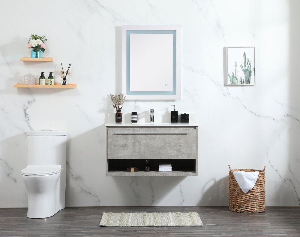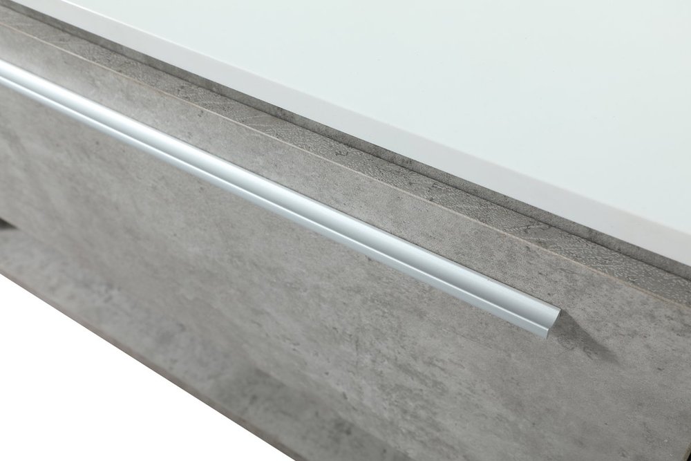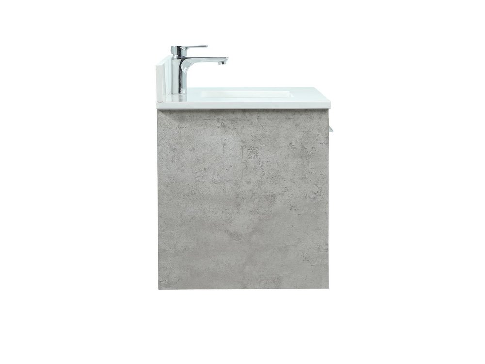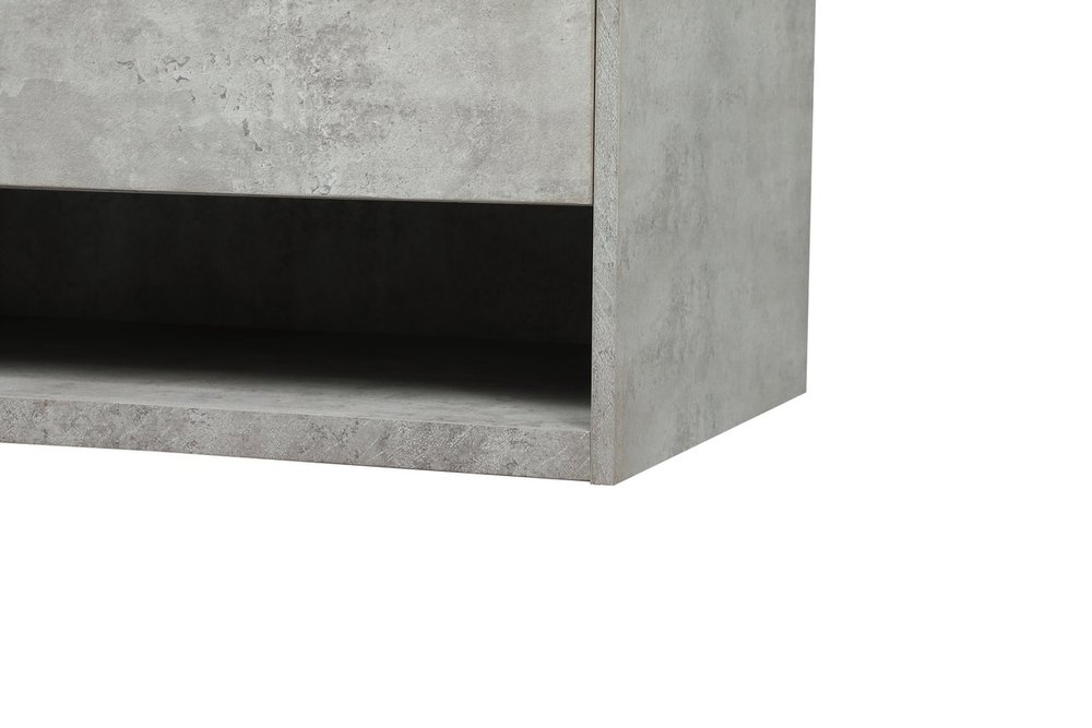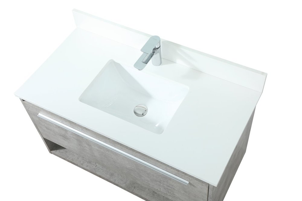 Save space and make your bathroom appear bigger with this floating vanity. Its minimal design will have you in awe, while its clean lines will leave your room feeling fresh and uncluttered. The Single u-drawer pulls out for storage while the open space below allows you to place extra towels or various other essentials. The ivory white engineered marble counter top with porcelain sink adds refined luxe while the aluminum barpull style handle adorn the vanity face. Comes with a matching backsplash to protect your walls.