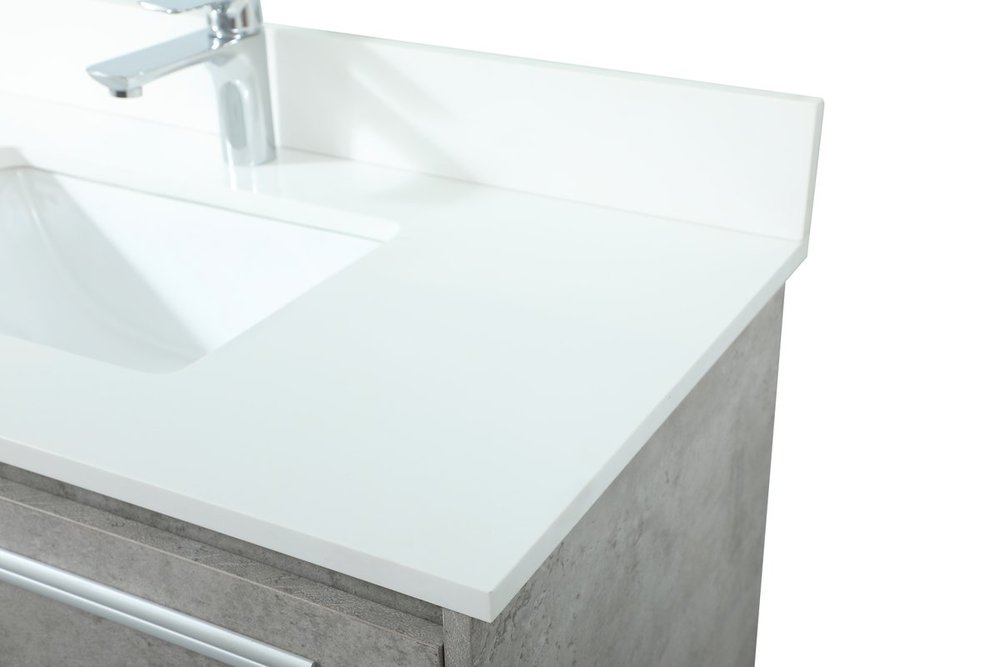 Comes with an undermount porcelain sink and a durable ivory white engineered marble stone top