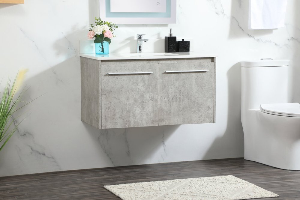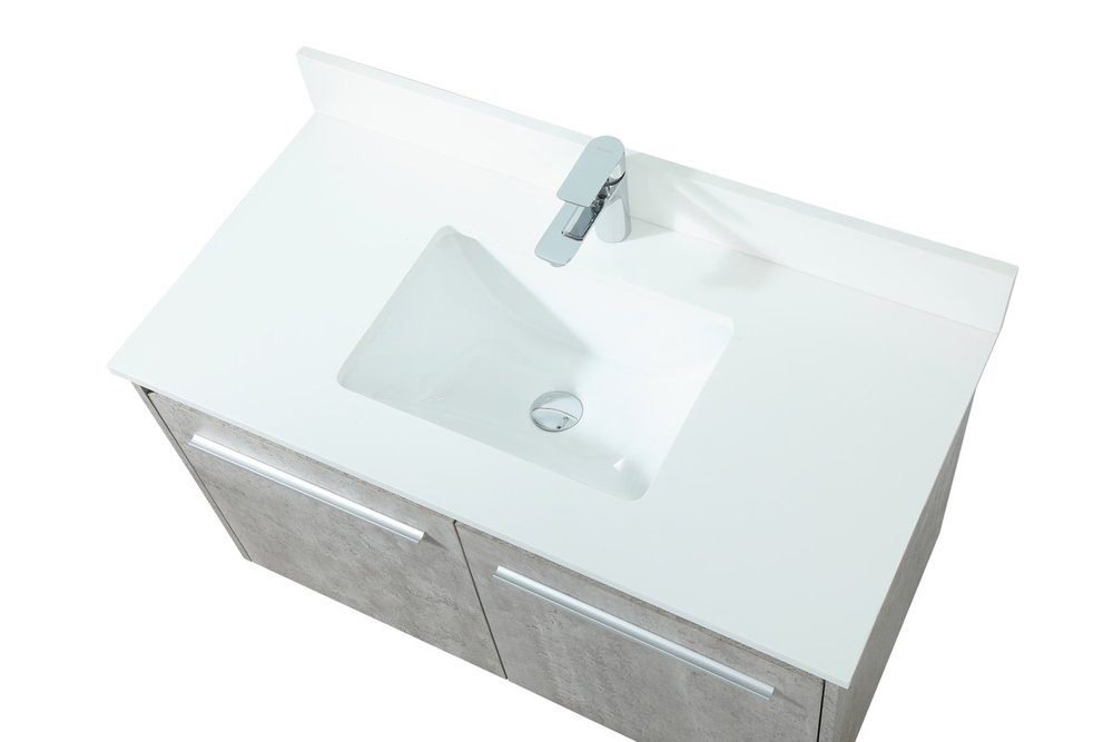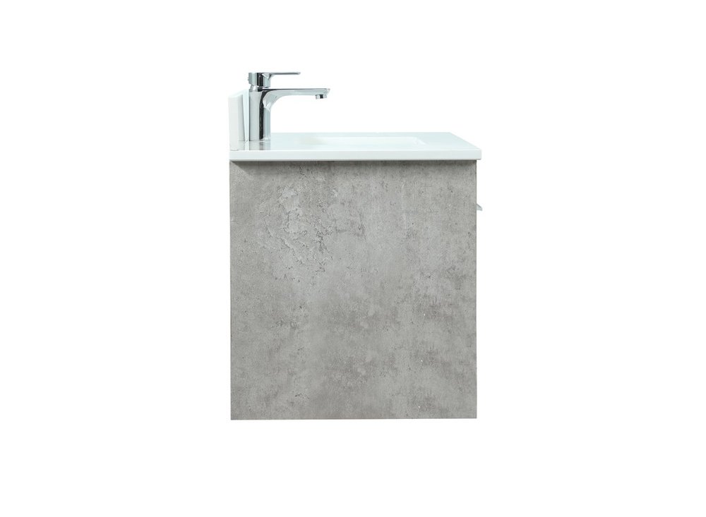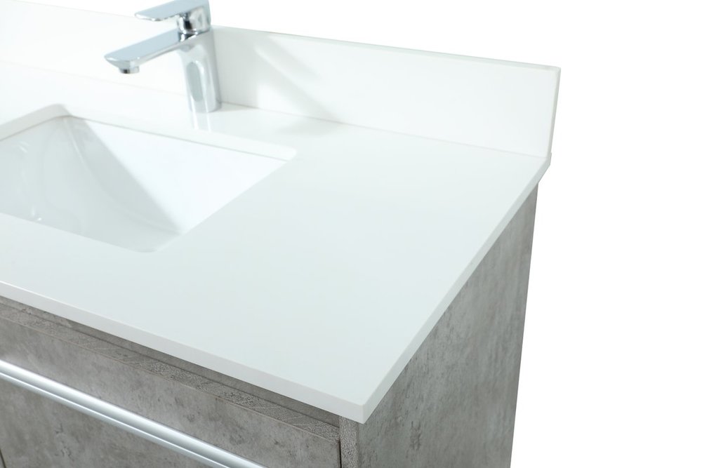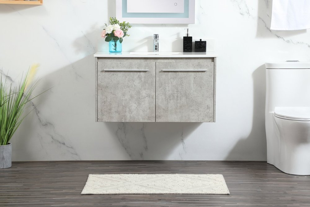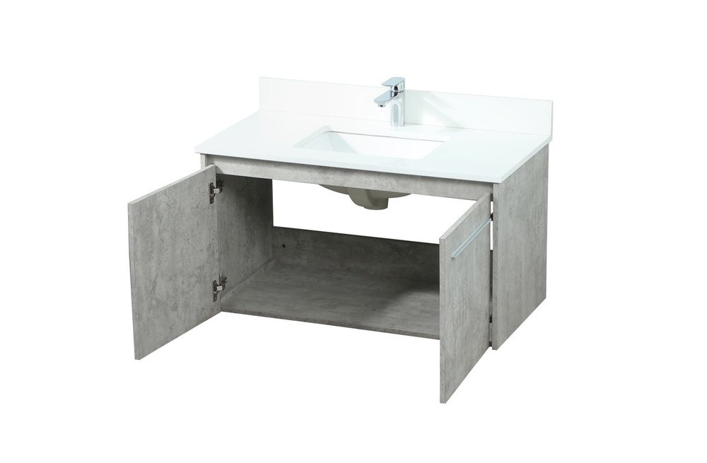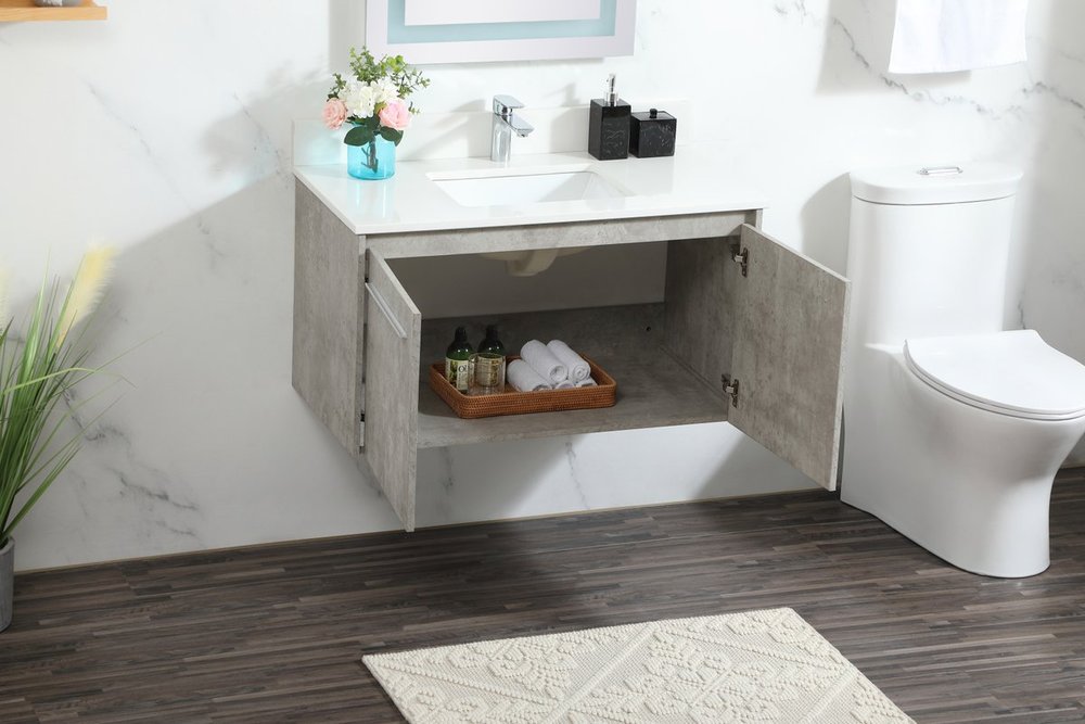 Save space and make your bathroom appear bigger with this floating vanity that comes in several finishes. Its minimal design will have you in awe, while its clean lines will leave your room feeling fresh and uncluttered. The Single cabinet opens with soft closing doors that allows for storage to place extra towels or various other essentials. Its low maintenance and durable engineered marble top will surely last through many washes. Comes with a matching backsplash to help protect your bathroom wall.