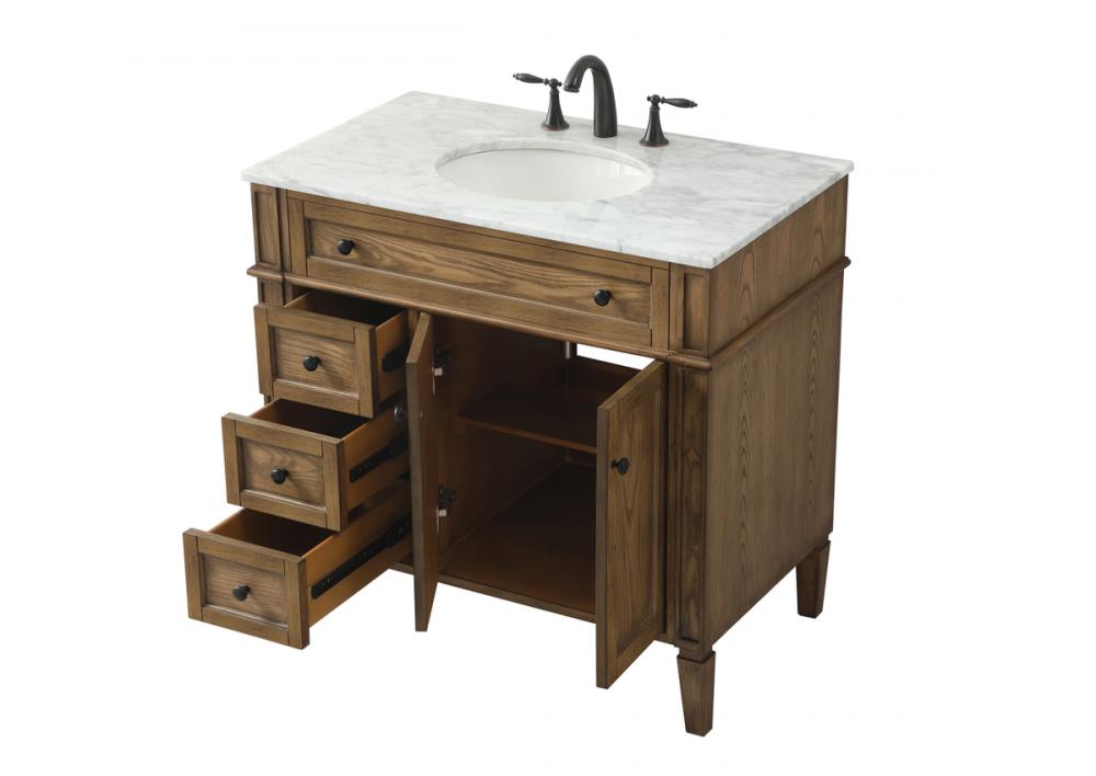 From its carrara white marble top to its handpainted cabinet, it is sure to make a splash in your bathroom. Beneath its natural stone marble top is a round white porcelain undermount sink. A removable shelf, for storing all your bathroom essentials. Convenient open back panel for hassle free installation access.