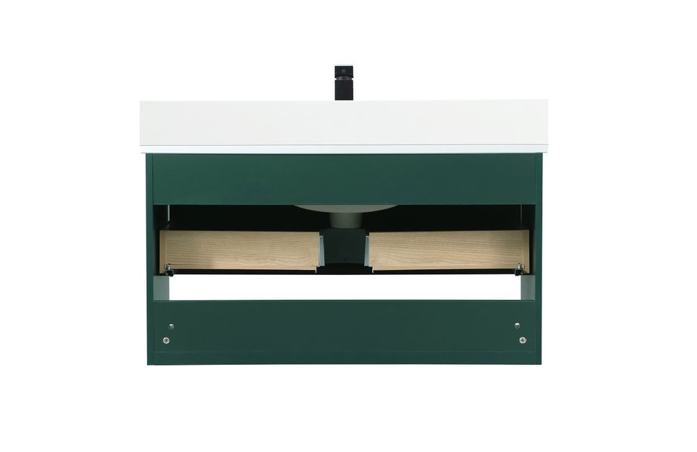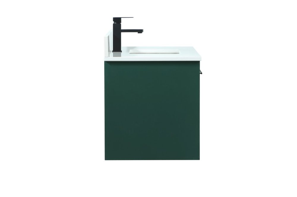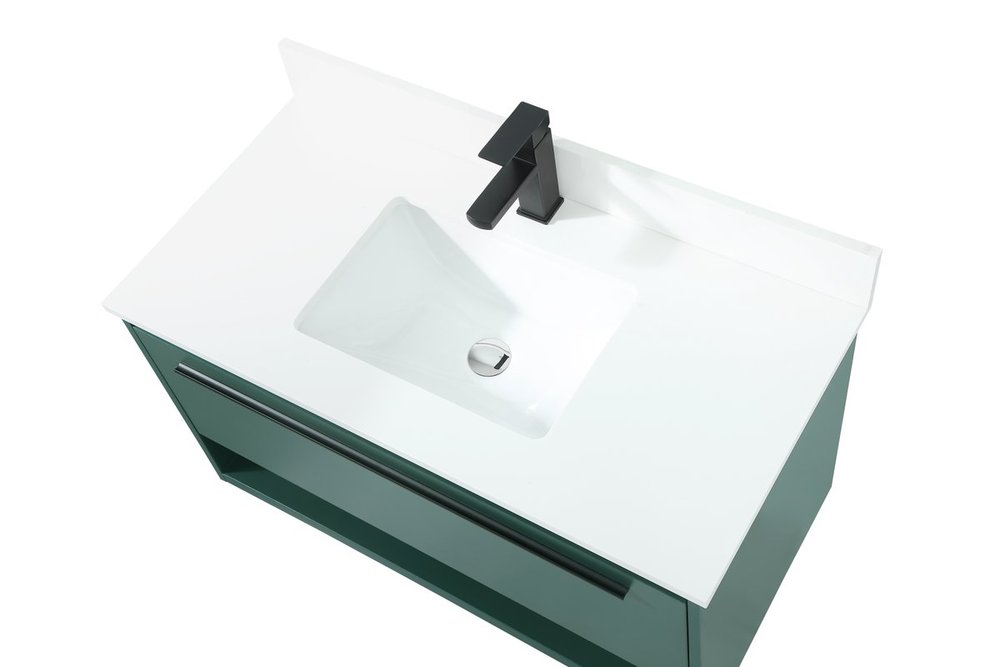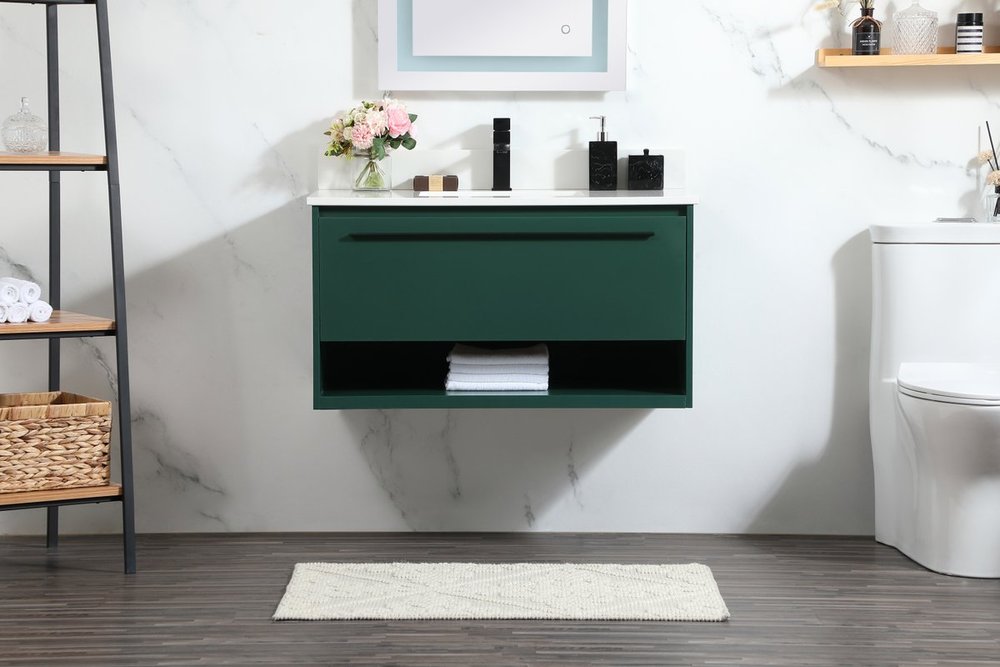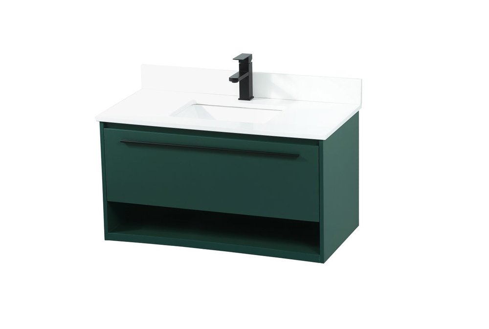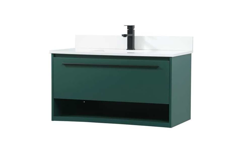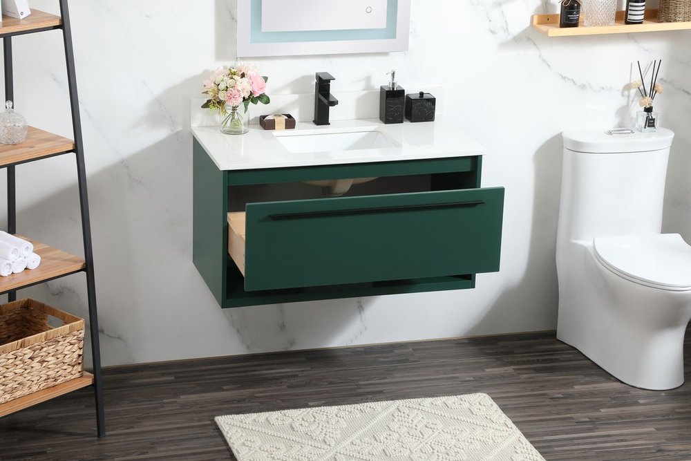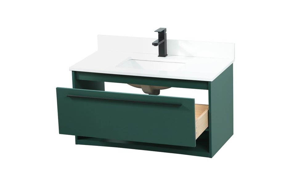 Save space and make your bathroom appear bigger with this floating vanity. Its minimal design will have you in awe, while its clean lines will leave your room feeling fresh and uncluttered. The Single u-drawer pulls out for storage while the open space below allows you to place extra towels or various other essentials. The ivory white engineered marble counter top with porcelain sink adds refined luxe while the aluminum barpull style handle adorn the vanity face. Comes with a matching backsplash to protect your walls.