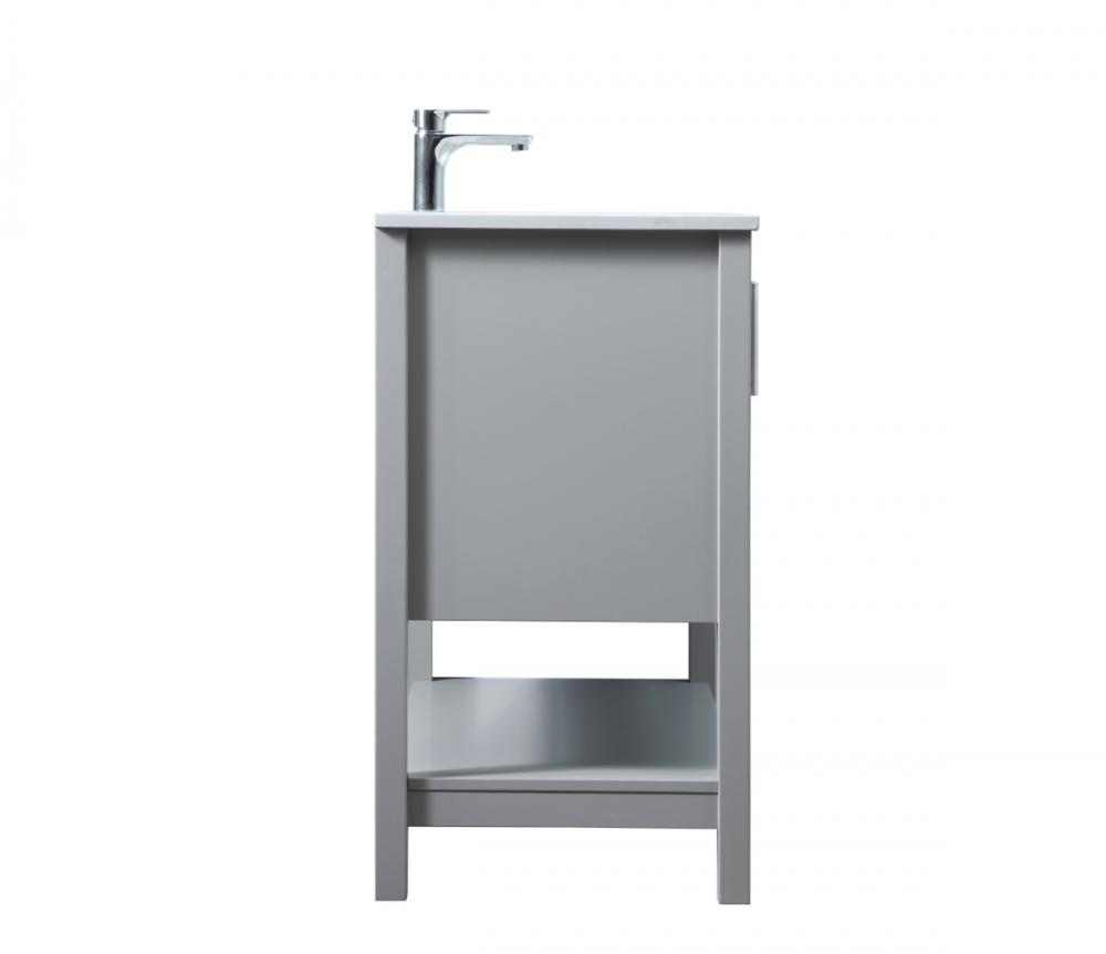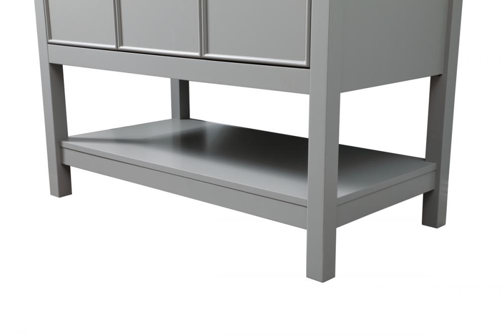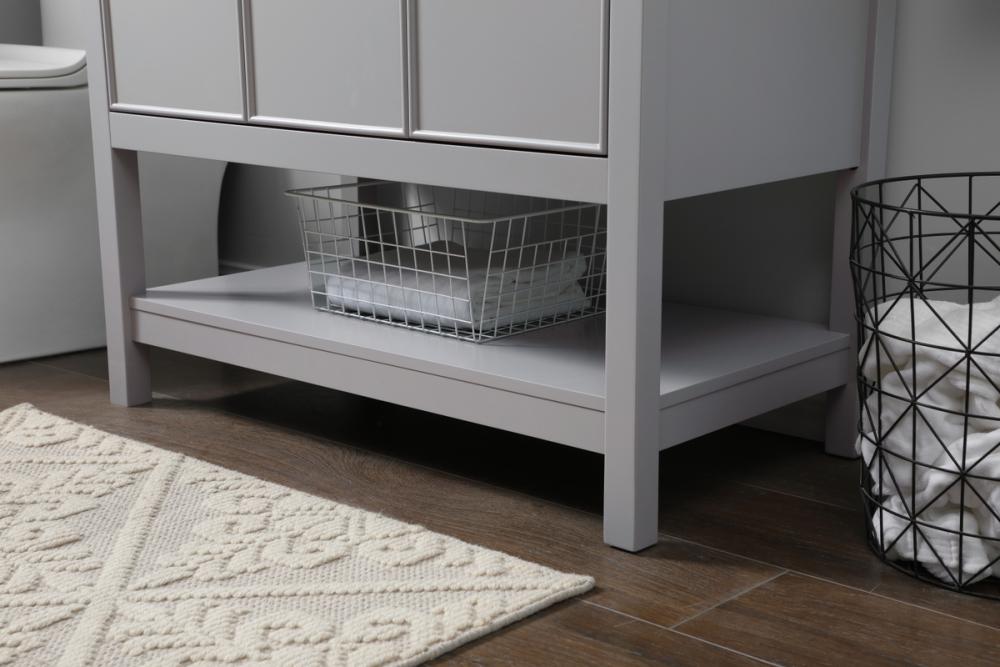 Boasting a lower open shelf for additional storage, this vanity offers a practical area to display decor or stow away essentials, seamlessly blending functionality with a touch of style for your bathroom.