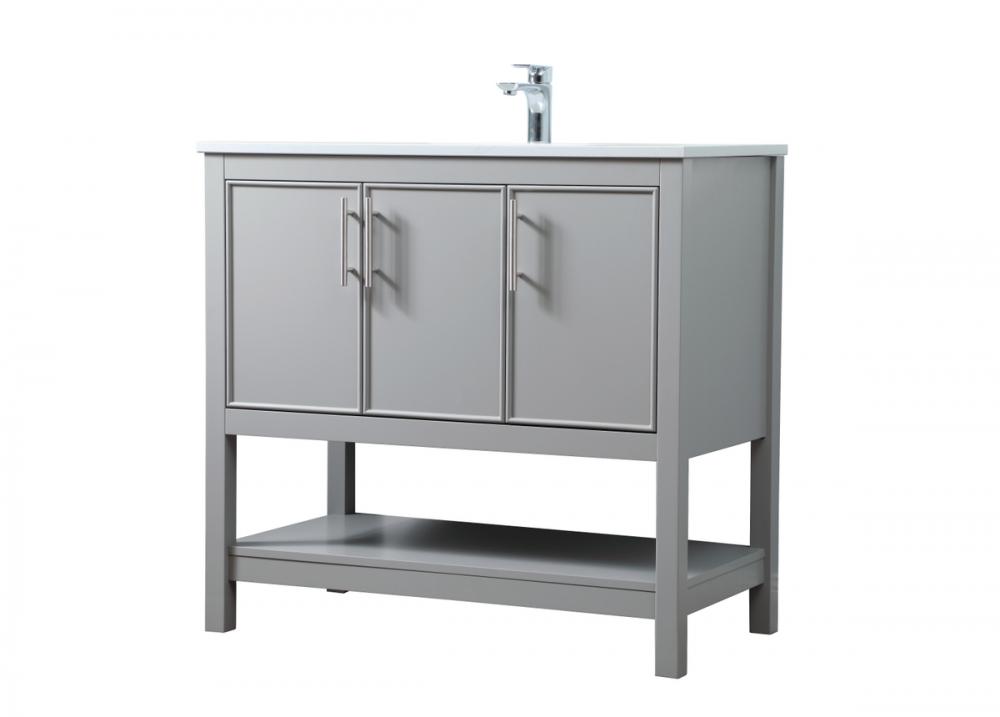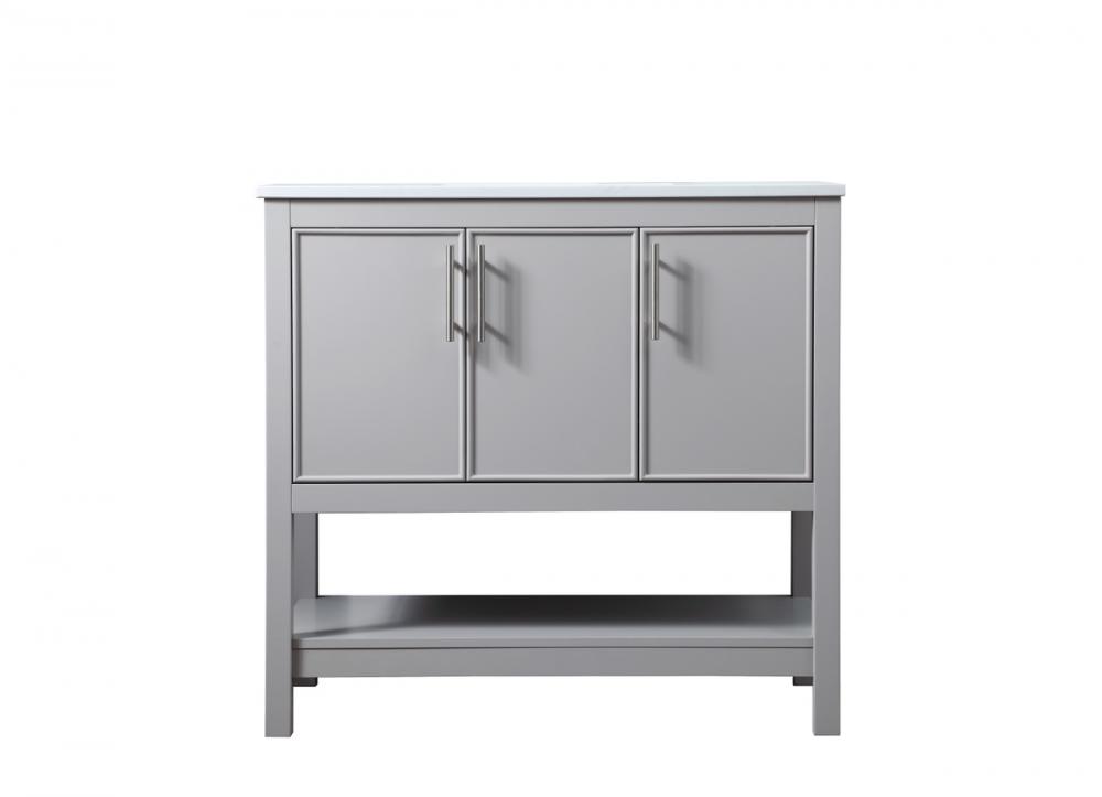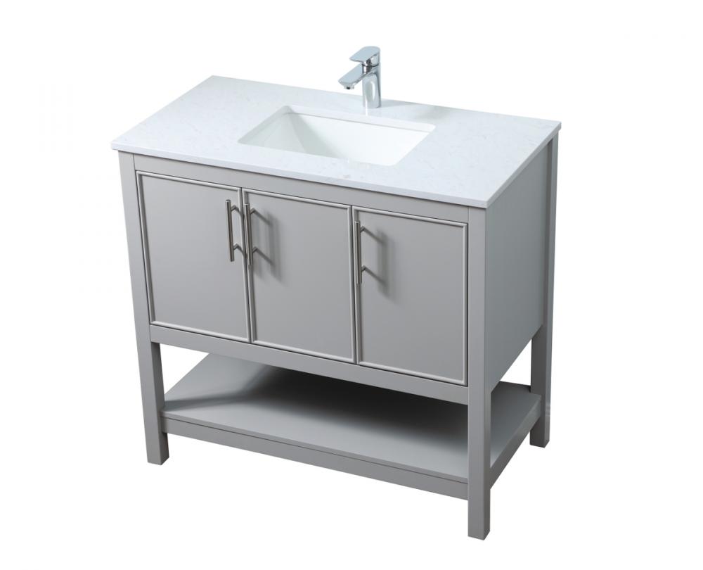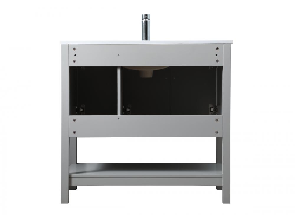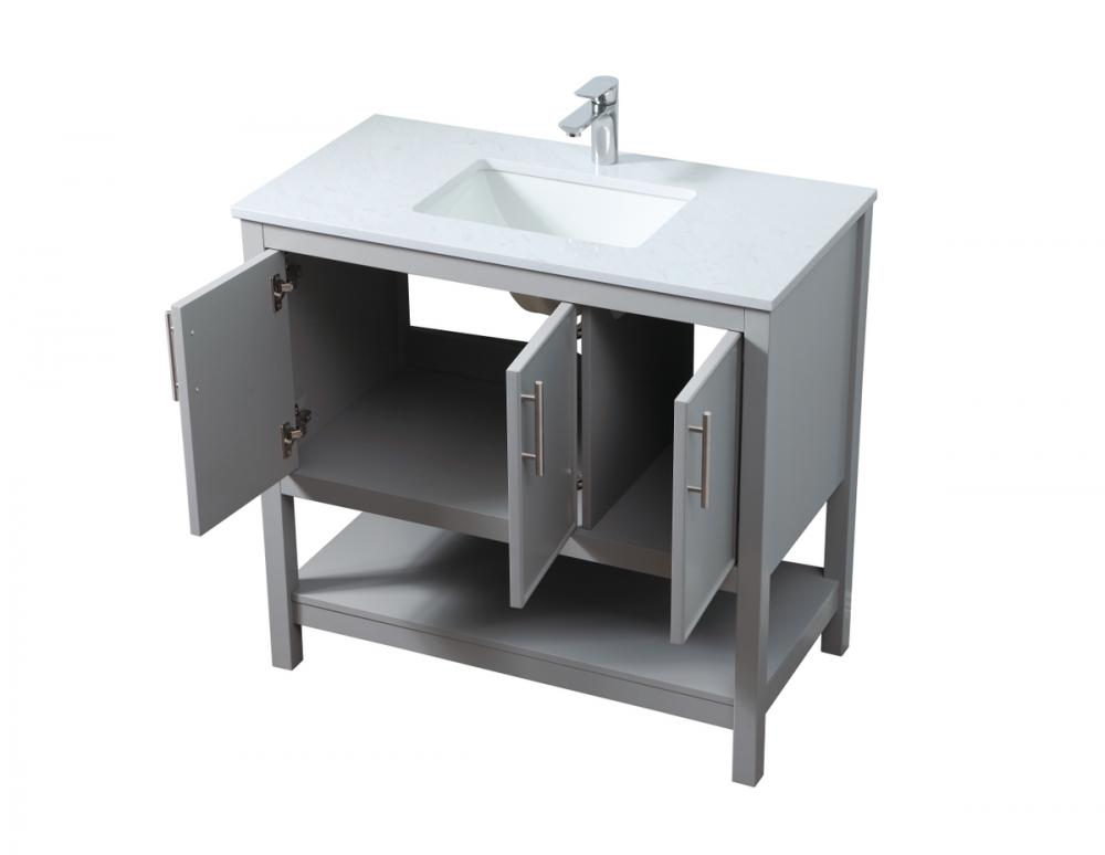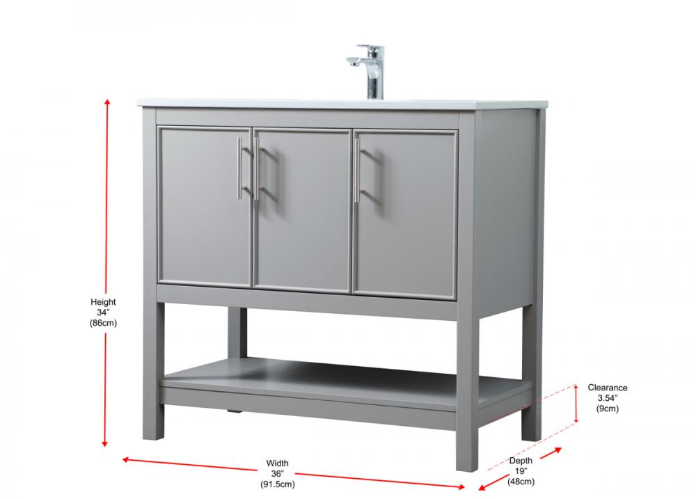 Experience the epitome of modern elegance with our meticulously crafted 36-inch vanity. Boasting a chic straight edge cut and an engineered marble top, this design features two functional cabinets with two soft-close doors, ensuring seamless and stylish access to ample storage. The vanity is complemented by a sophisticated undermount porcelain sink, merging style with practicality for an elevated bathroom experience. Adorned with sleek pulls and featuring a lower open shelf, it seamlessly combines contemporary aesthetics with functional design. Additionally, the single pre-drilled hole allows for easy faucet personalization, adding a final touch of elegance to your unique bathroom. Redefine your space with this versatile and stylish addition.