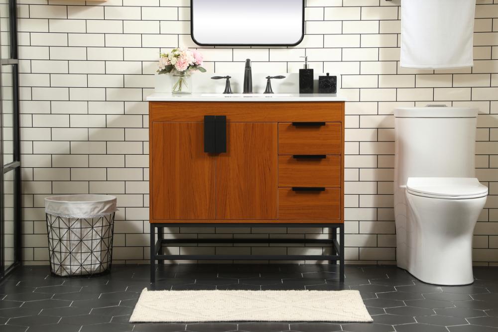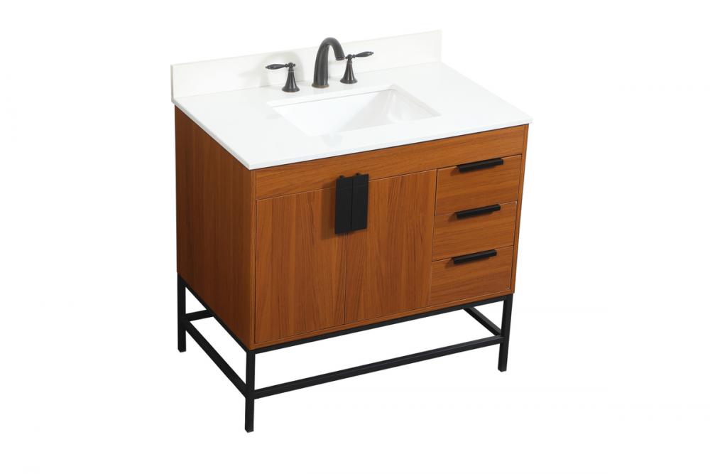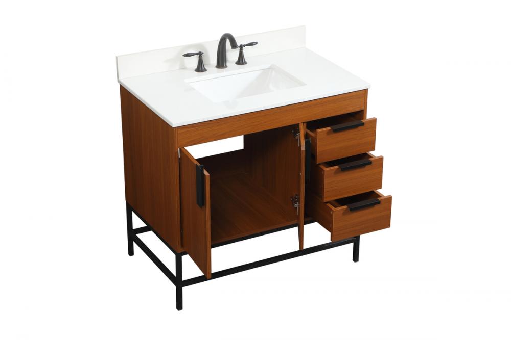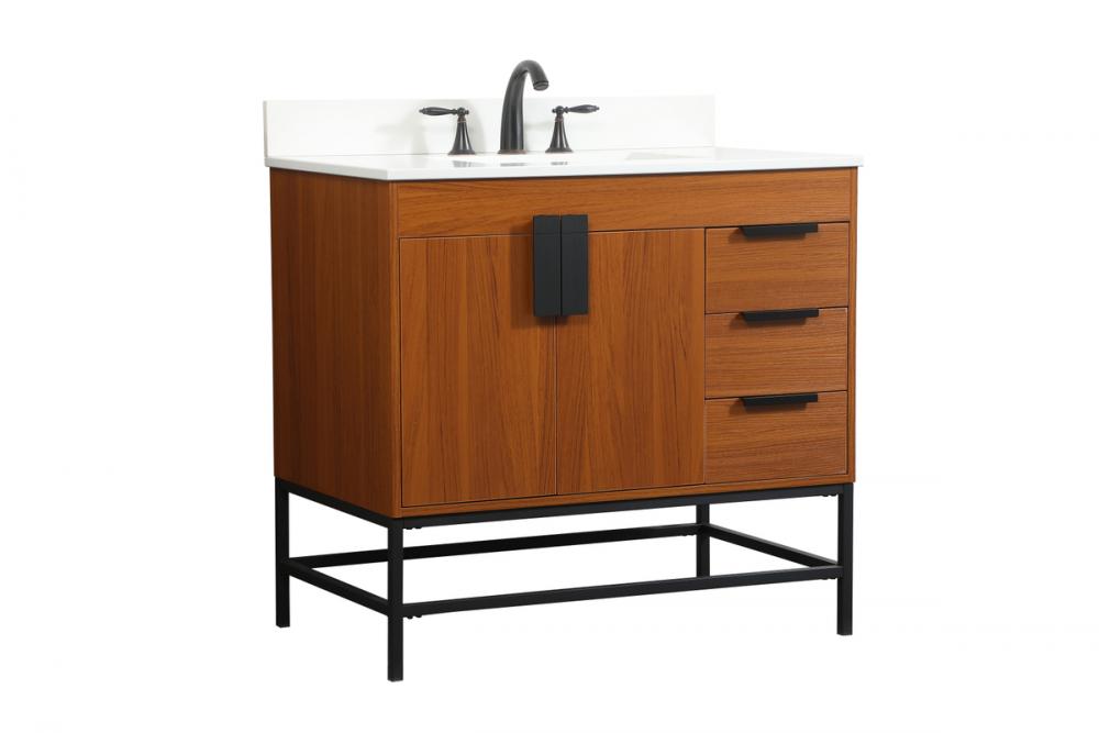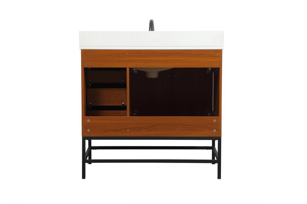 36 inch Single bathroom vanity in teak with backsplash