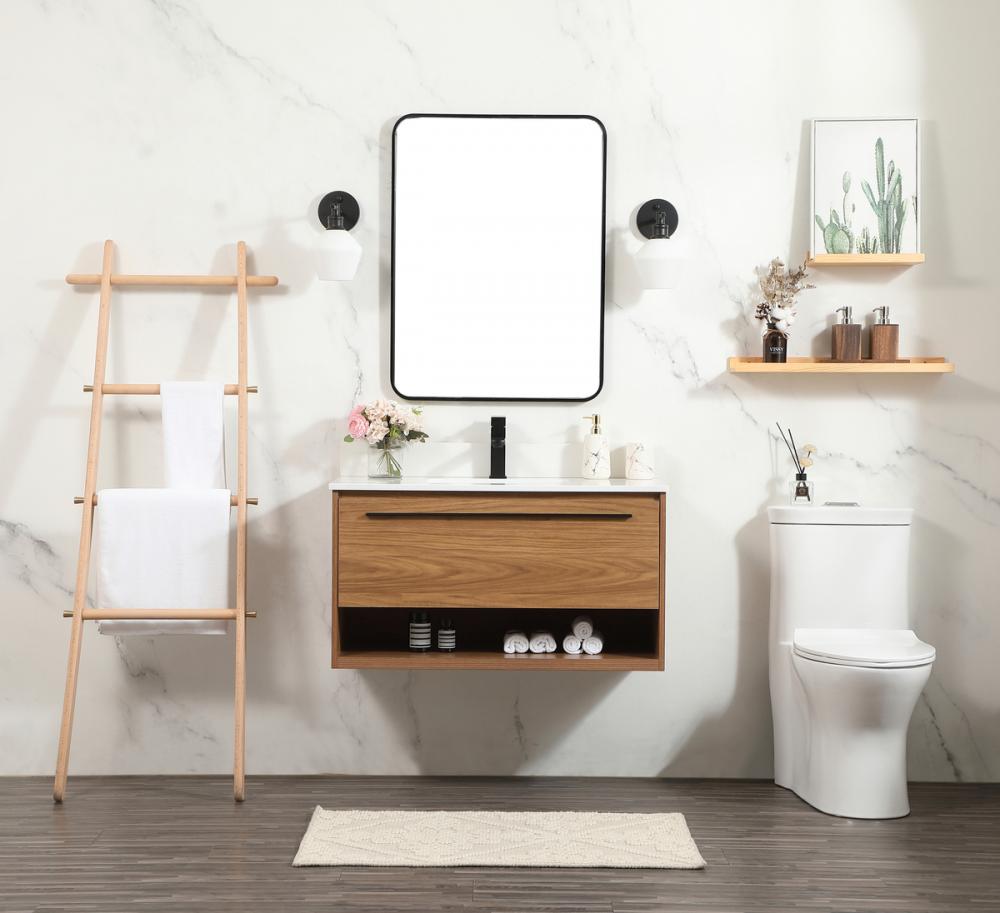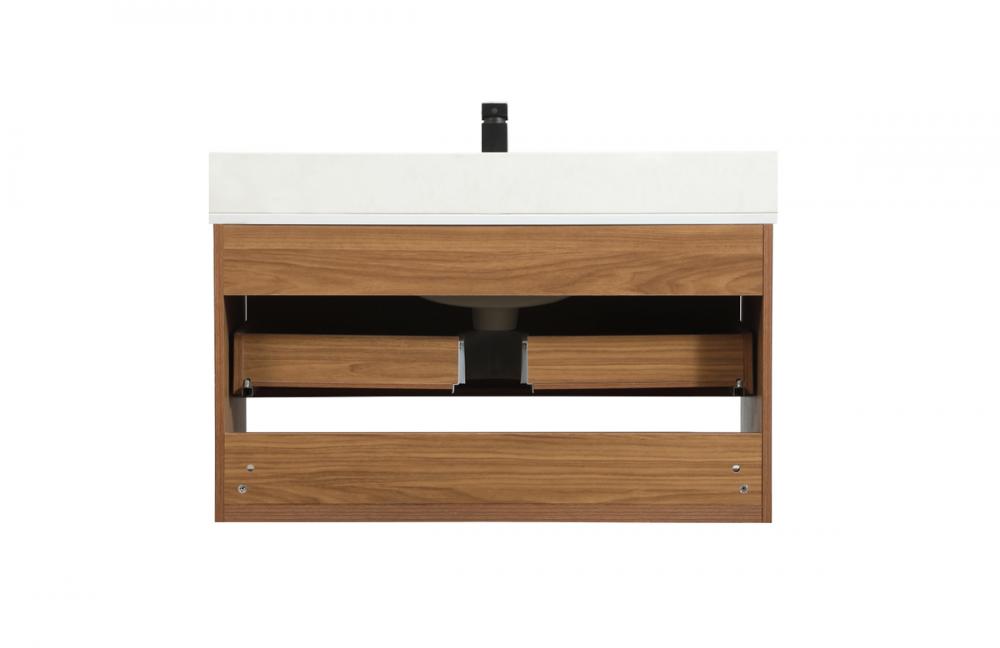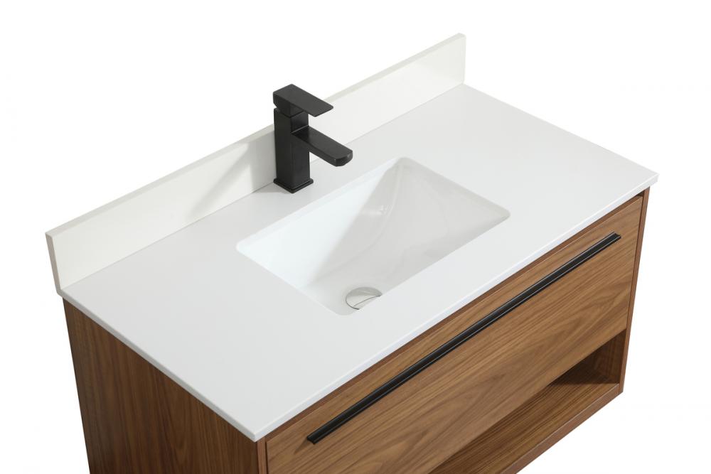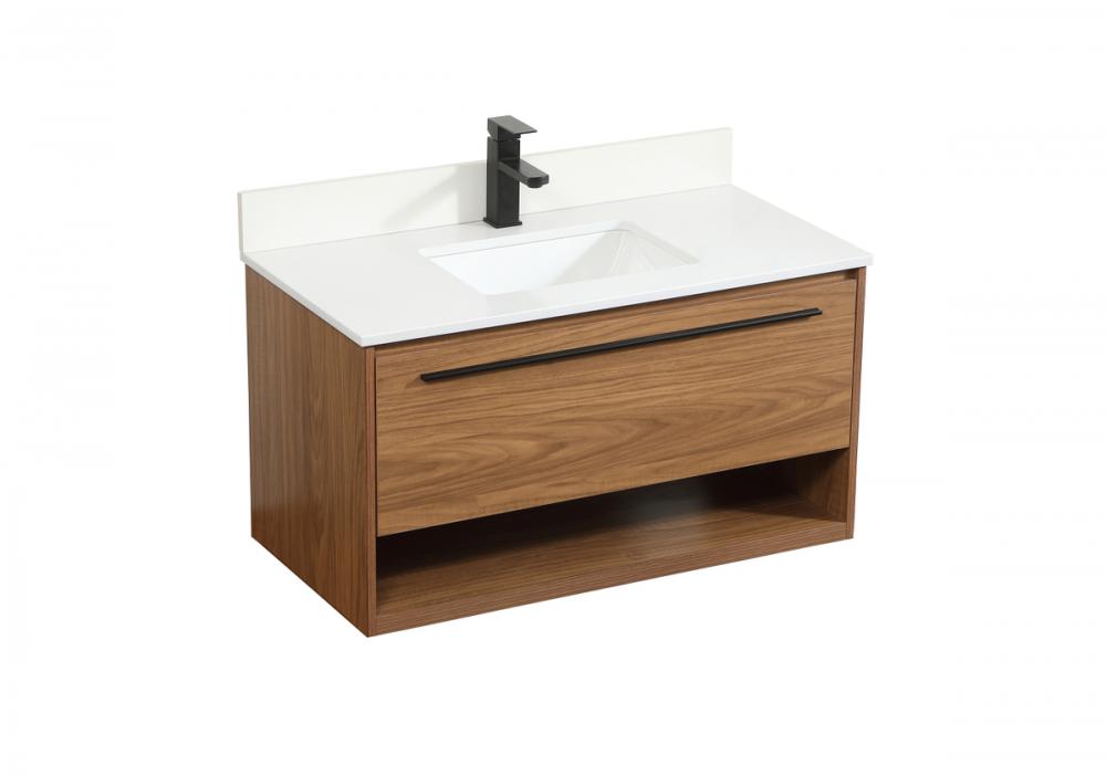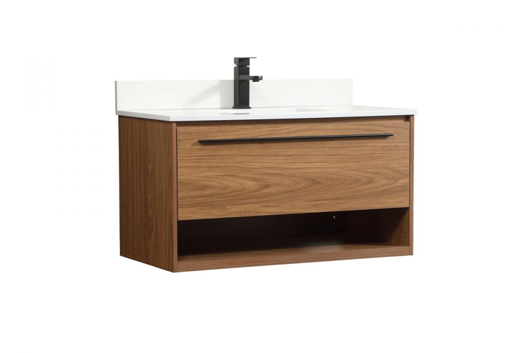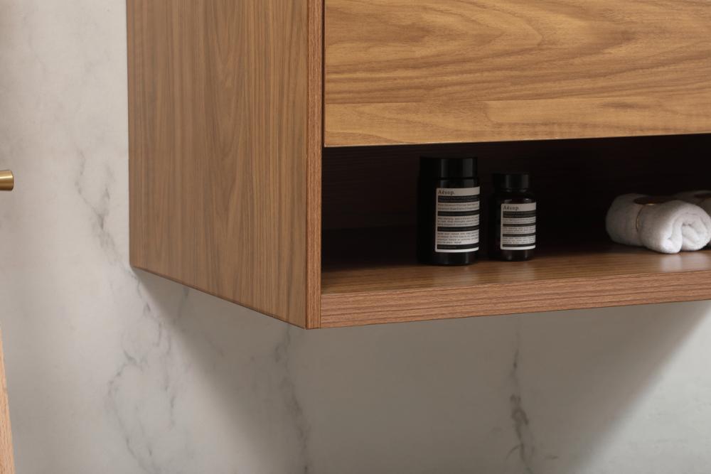 36 inch Single bathroom vanity in walnut brown with backsplash