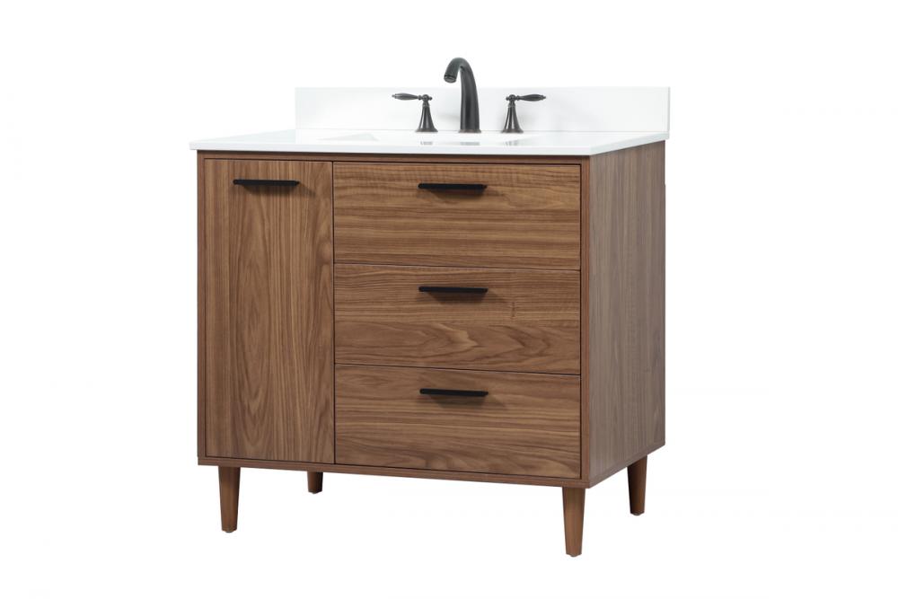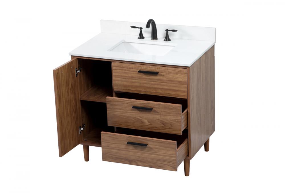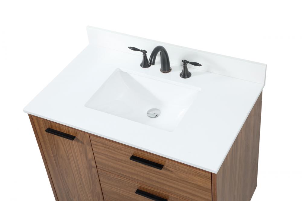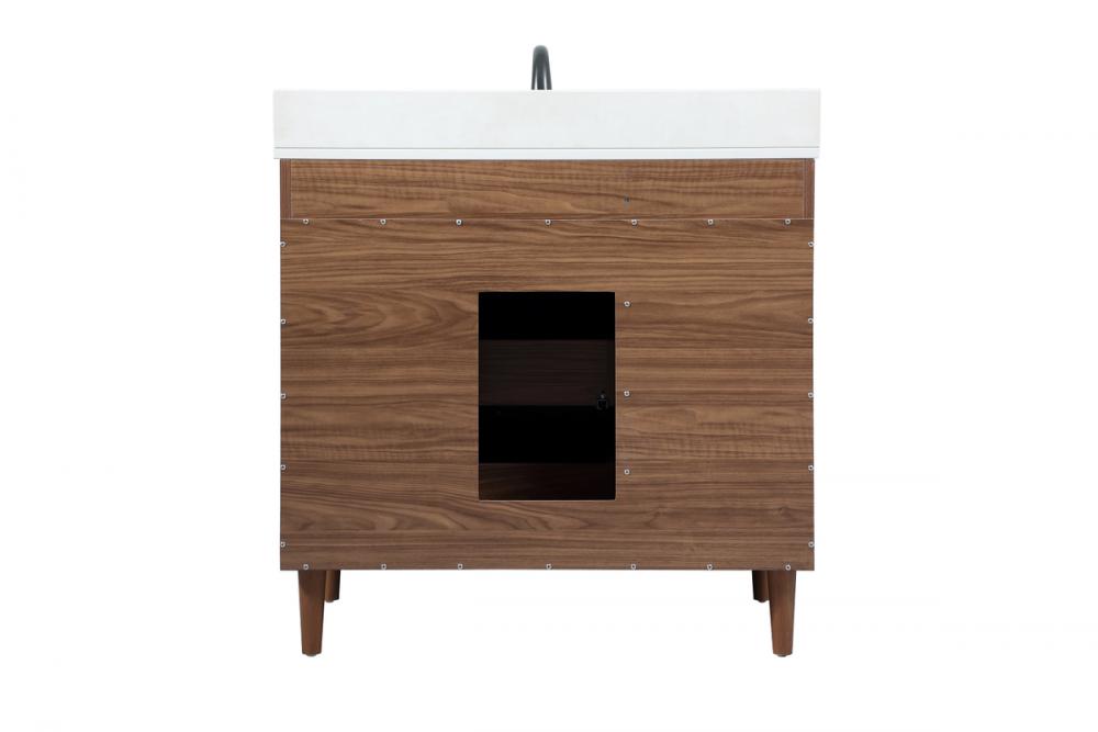 36 inch Single bathroom vanity in walnut brown with backsplash