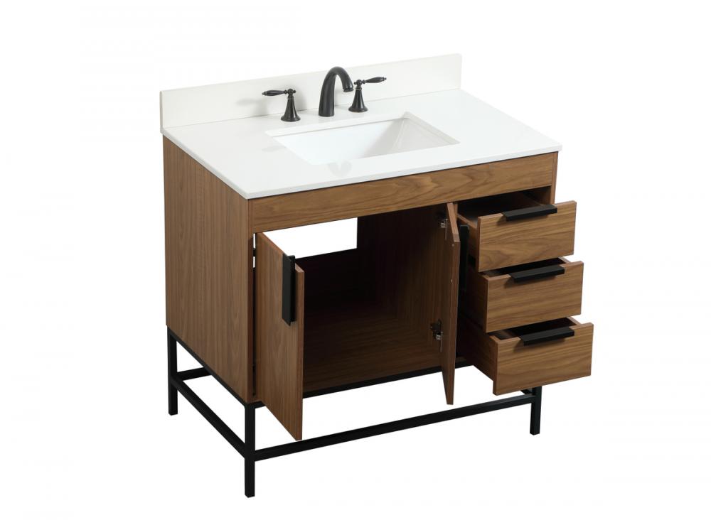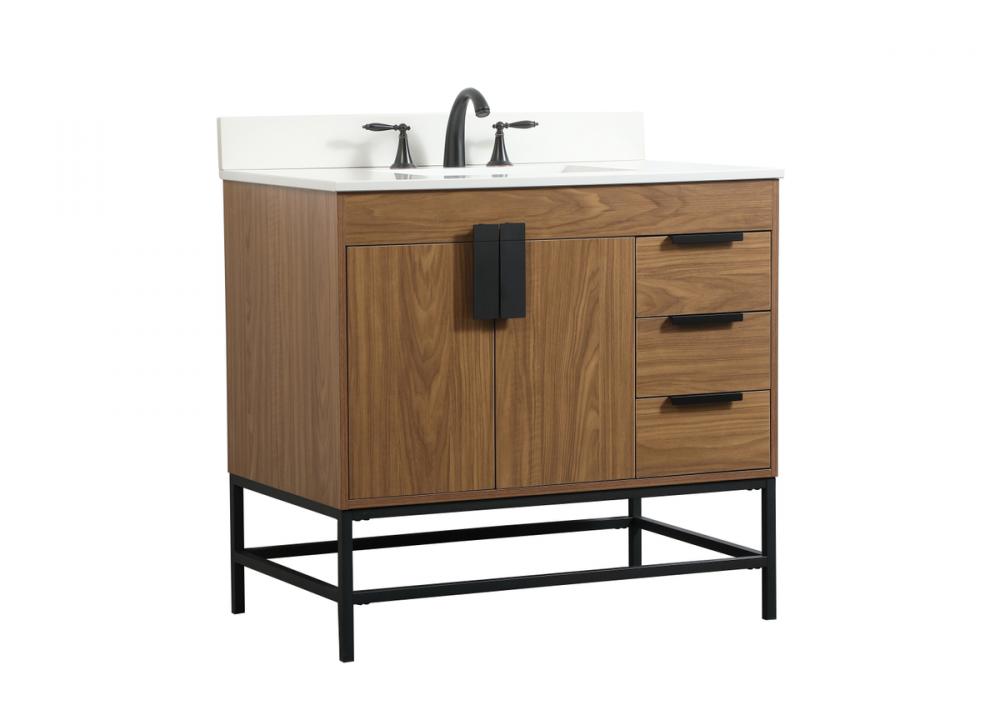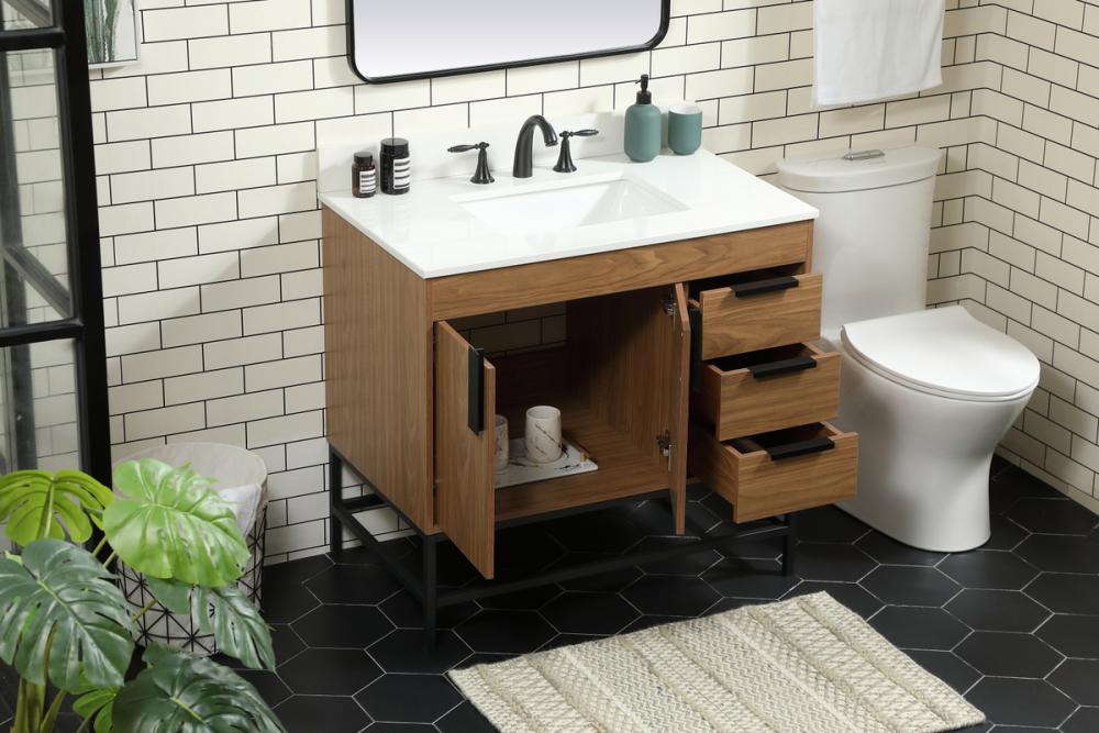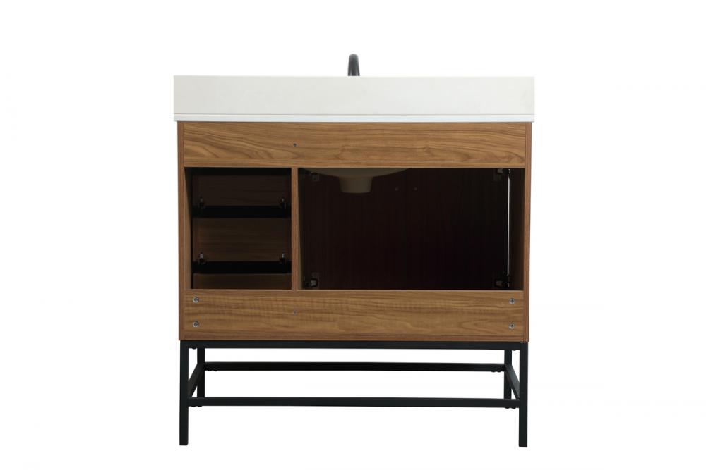 36 inch Single bathroom vanity in walnut brown with backsplash