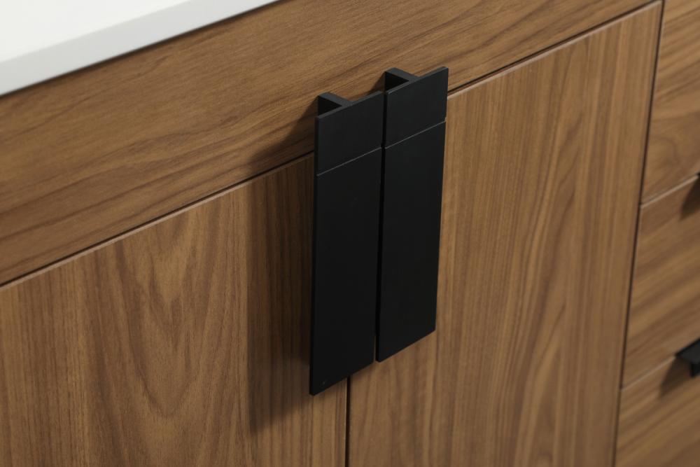 Oversized modern handles accentuates the smooth mdf wood base