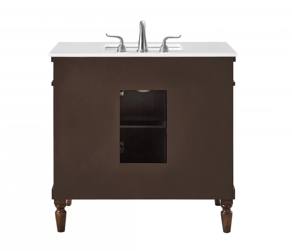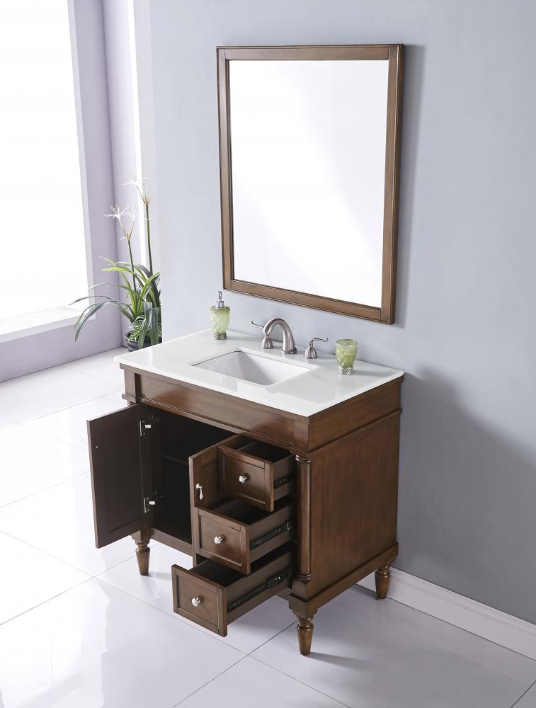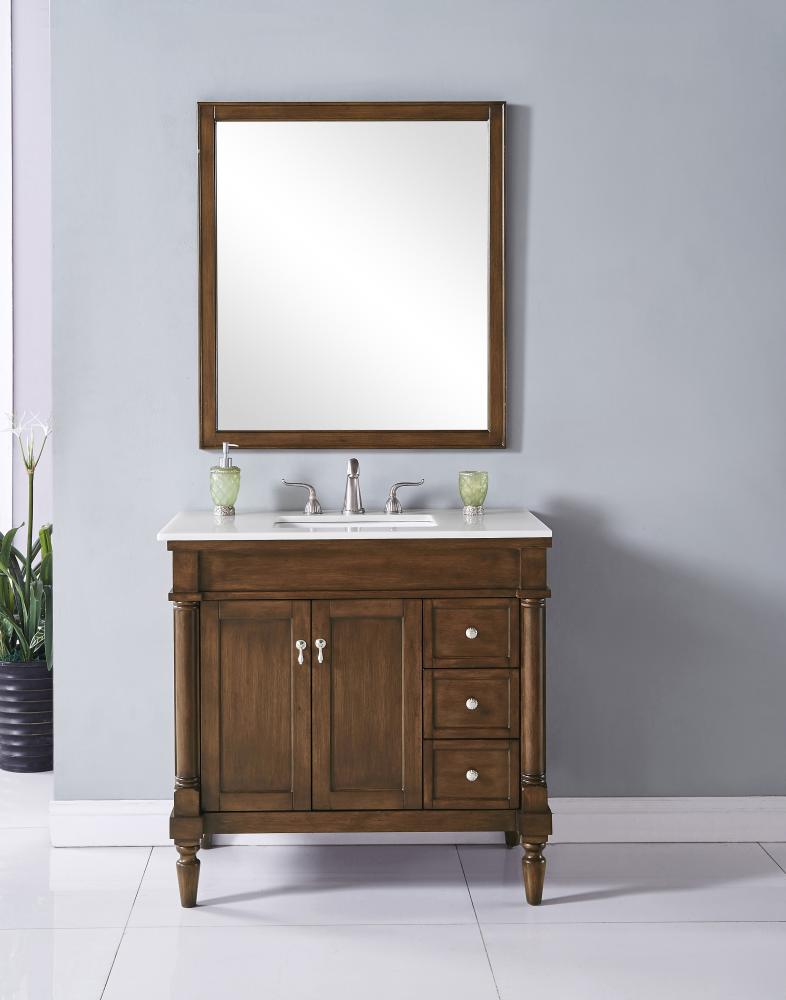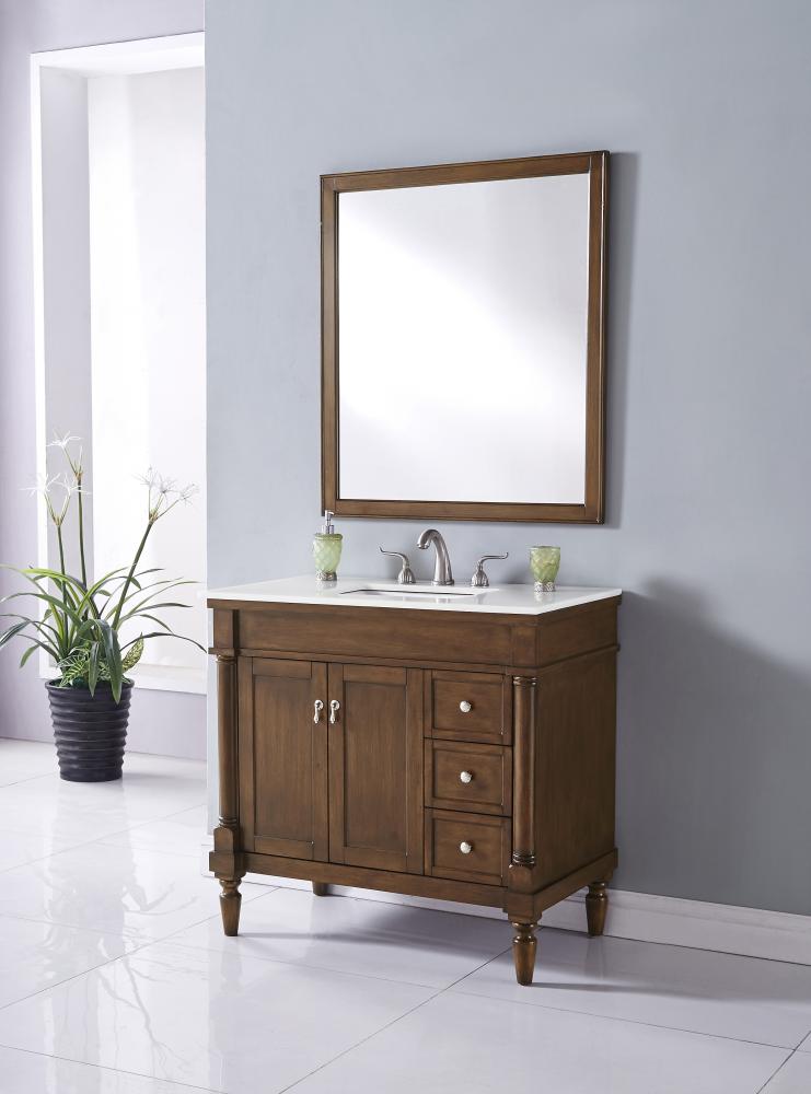 36 inch Single Bathroom vanity in Walnut with ivory white engineered marble