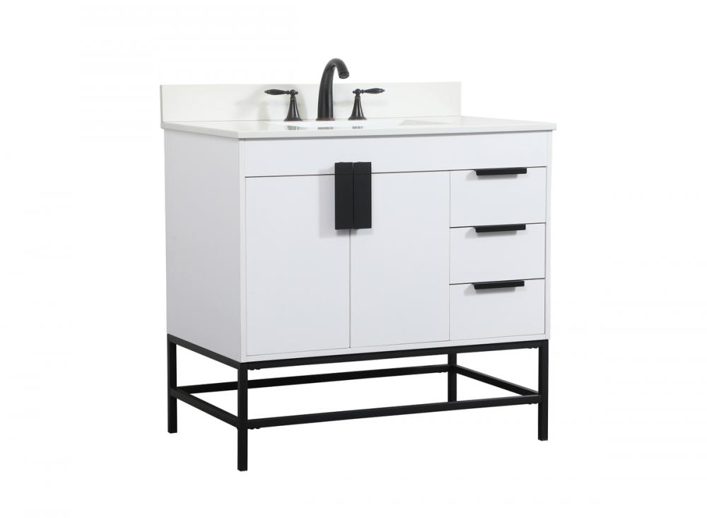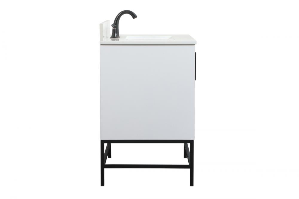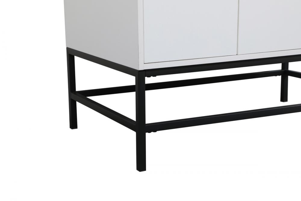 This vanity is a sleek-looking piece of bathroom furniture that is easy to incorporate into your design scheme. The cabinet features a smooth door panel with an oversized steel handle and soft close hinges provide ample room for accessories. Constructed of engineered wood, the powder-coated metal rod legs are an urban industrial look that we love. Minor assembly of the metal legs needed to get this vanity up and running. Comes with a matching backsplash to complete the look and protects your wall.