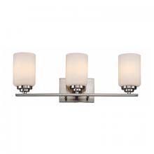 The Mod Pod Collection offers a sleek look with a high quality finish. The Mod Pod 22" Vanity Bar emanates a warm glow, while providing ample task lighting for any bath or powder room. This fixture has three equally spaced lights, a square back plate and can be mounted upwards or downwards. The Mod Pod Collection is Modern style indoor lighting, with a transitional urban influence. White Frost heavy candle shades and steam-punk piston hardware give the Mod Pod collection a recycled appeal and an industrial attitude. Two finish options are available to choose from in this collection, making it easy to blend with warm or cool color interiors.