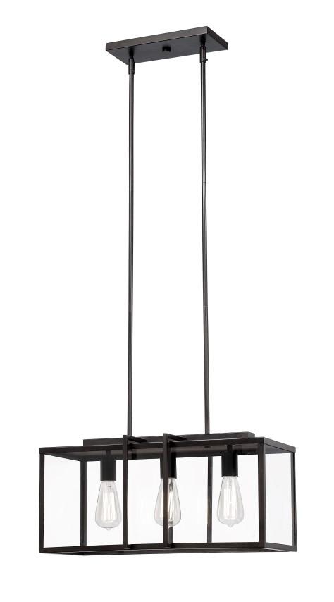 The Eastwood II 12" Pendant provides abundant light to your home's interior, while adding style and interest. Transform your living spaces with this Industrial fixture that enhances a variety of interior design themes. Three lights shine through the Clear Glass sides of this rectangular fixture. Extension rods are included for an adjustable hanging height.