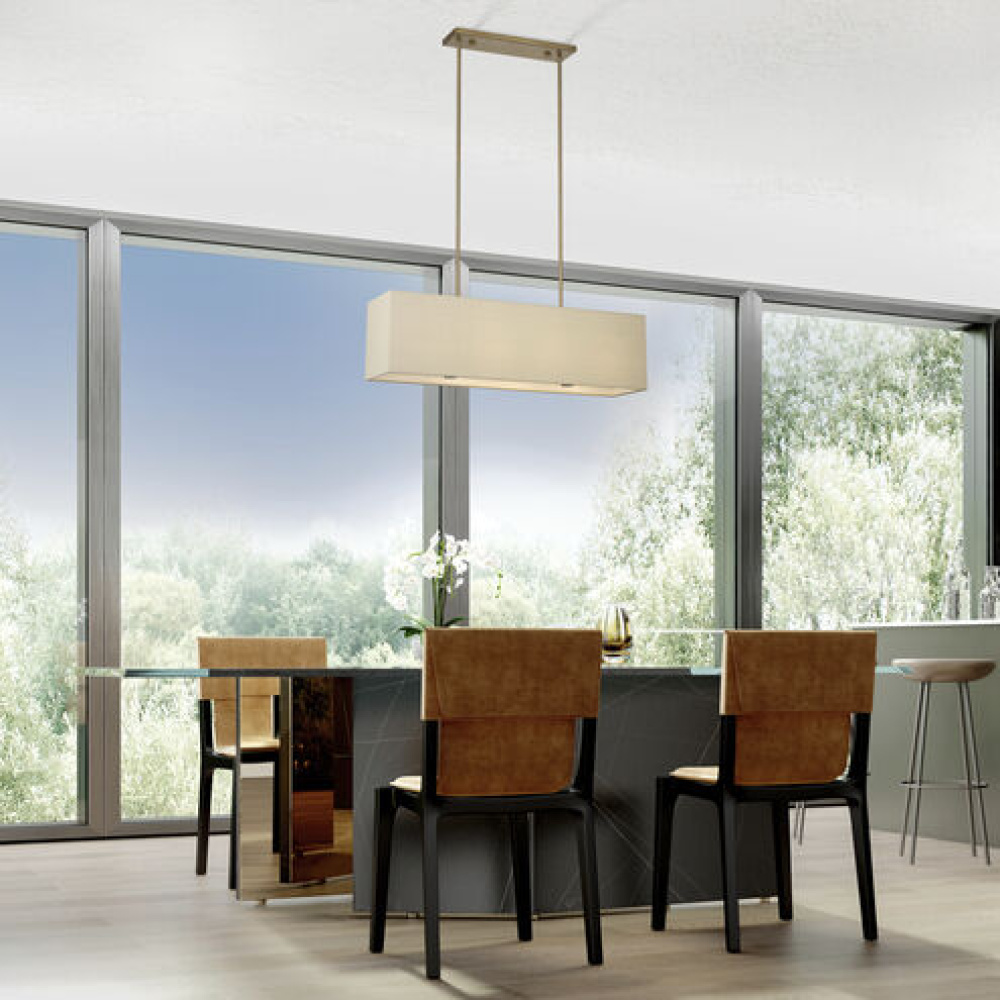 For those who appreciate minimalist design with maximum impact: the transitional Summit lighting collection delivers refined beauty and timeless functionality. The Summit luminaire consists of a rectangular and square shaped handcrafted hardback shade. When lit, it appears as a glowing monolith, bathing the surrounding space in peaceful, powerful illumination.