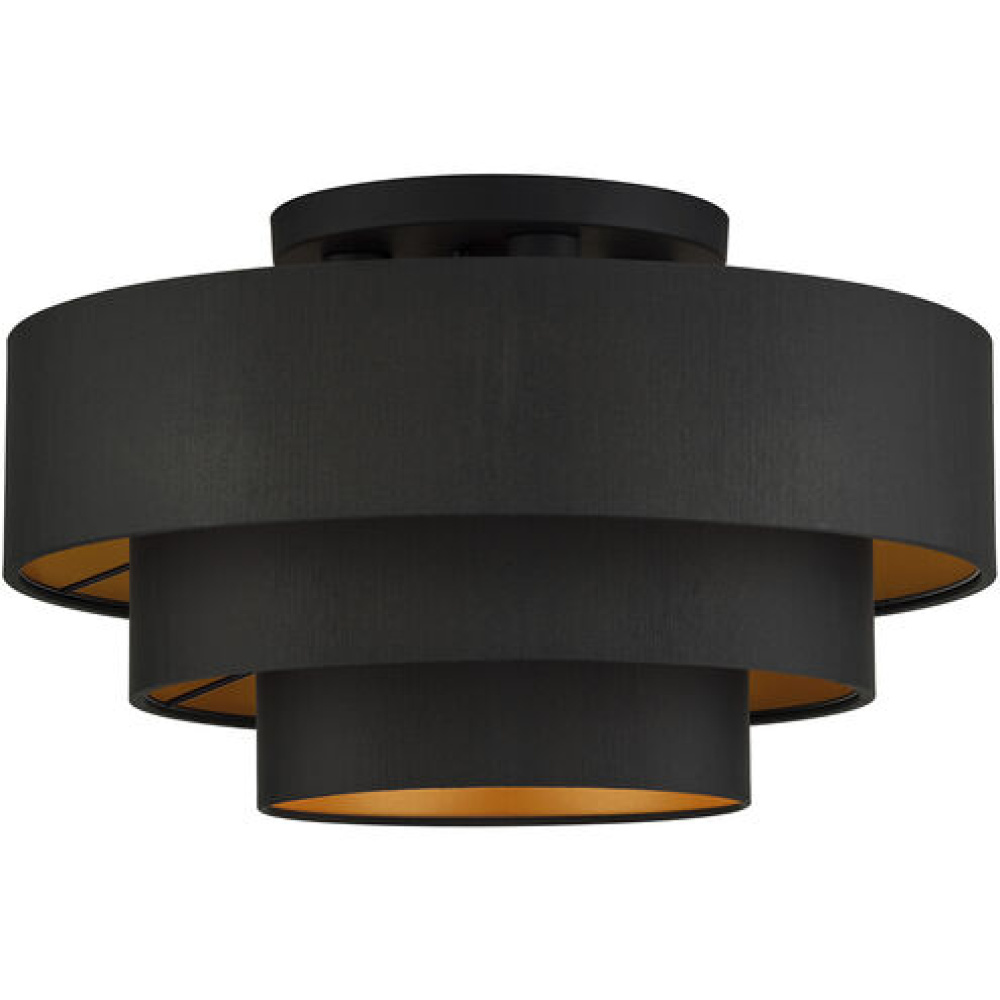 Hand Crafted Black Fabric Shade with Orange Color Inside