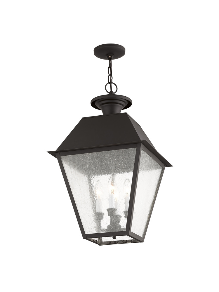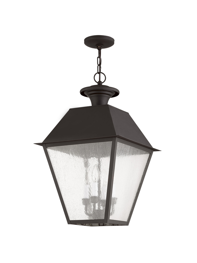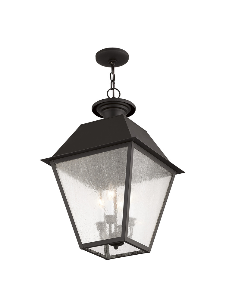 With stunning seeded glass and a bronze finish, this outdoor hanging lantern will make an elegant addition to any outdoor space. Formed from solid brass & traditionally-inspired, this downward hanging outdoor hanging lantern is perfect for a driveway, back porch or entry way.