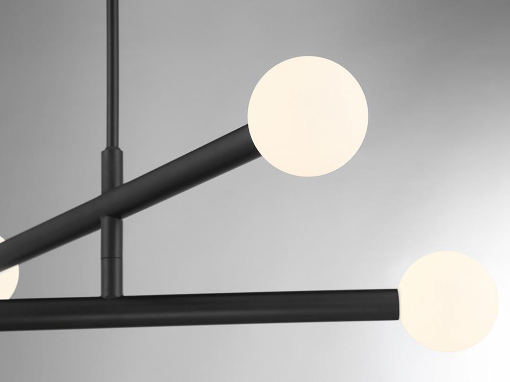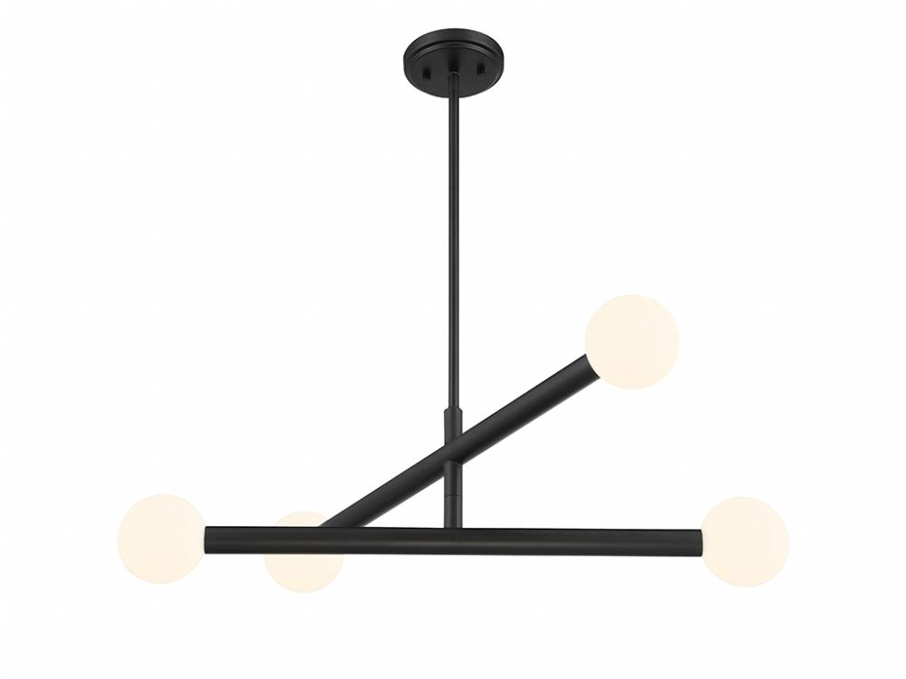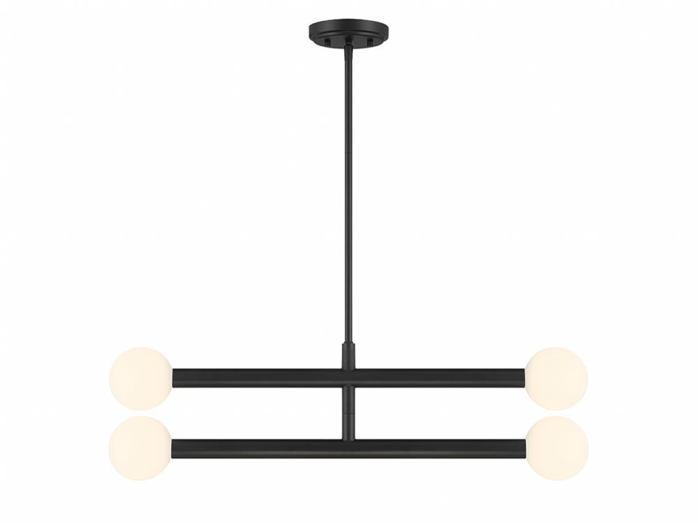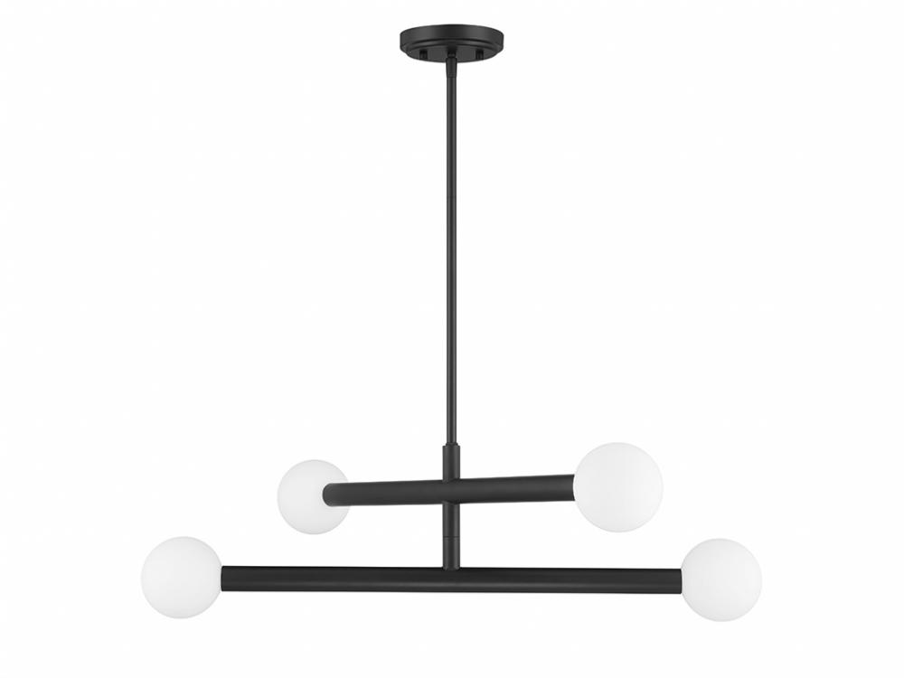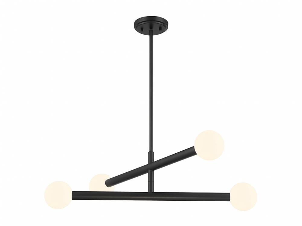This perky, peppy 4-light chandelier has an understated style that makes a big impact! The light shines from inside orbs of white opal glass and the Matte Black finish works beautifully with any decor. You can even rotate the arms for a customized look! This chandelier is 30" in width and has an adjustable height ranging from 8" to 62". It comes with four 12" downrods and one 6" downrod. Uses four G9 LED bulbs of up to 3.5 watts per bulb. Bulbs not included.