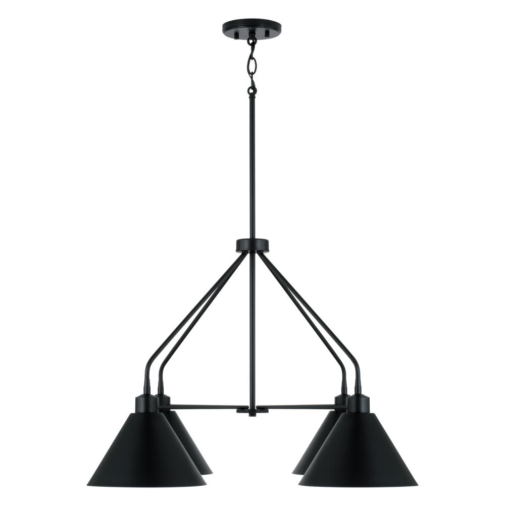Bring modern style to any space with the Alden Chandelier. The crisp, angled shades and contoured arms create a unique silhouette, while the Matte Black finish with White interior offers a sleek contrast.