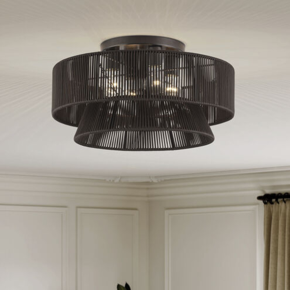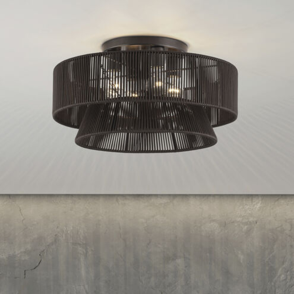 Laidback yet disciplined, the midcentury modern Florell lighting collection celebrates all versions of You: from “beach-haired weekender” to “visionary CEO”. with a vast selection in dramatic colors, this boho-inspired design features minimalist metal frames supporting drum-shaped, tapered and tiered shades – beautifully hand-threaded with sleek (fade- and fray-resistant) polyester rope. Semi-transparent texture allows for creating nuanced shadowing effects.