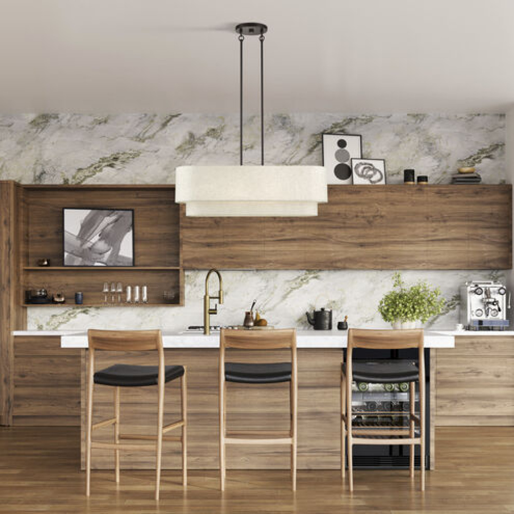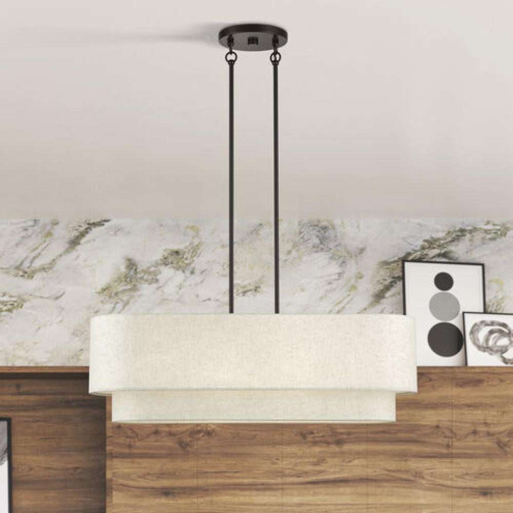 No room is too big or too small for the ambient, modern Manorwood lighting collection, given its extensive line-up of ceiling and wall light models in round and linear styles. Featuring minimalist metal frames (available in several mood-setting metallic finishes), the versatile Manorwood design is centered around handmade hardback shades concentrically stacked in a “wedding cake” style in up to 4 tiers.