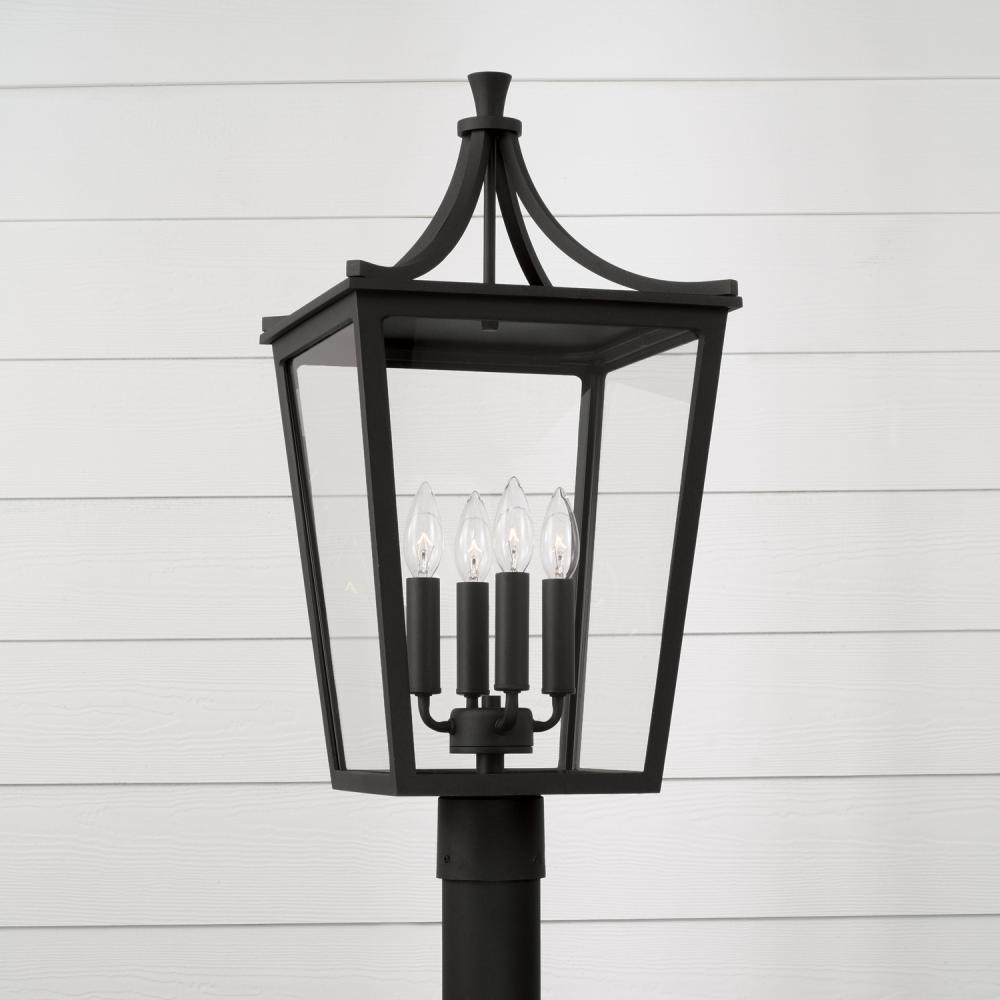 12"W x 25"H 4-Light Outdoor Post Lantern in Black with Clear Glass