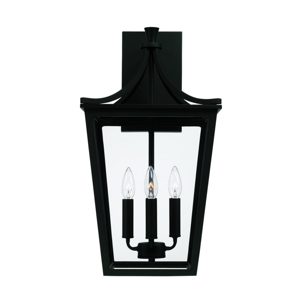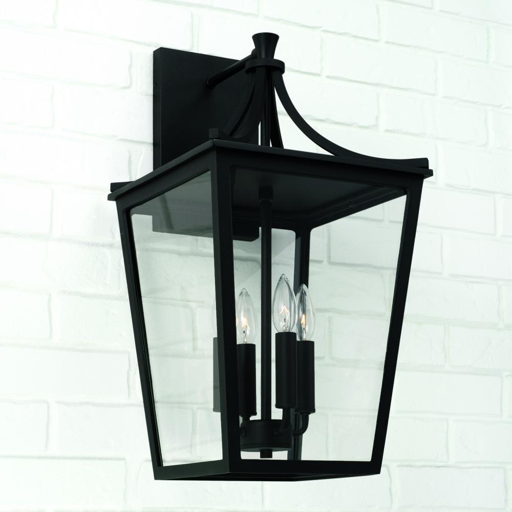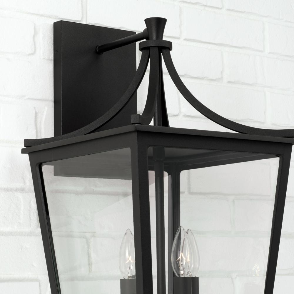 12"W x 23.25"H 4-Light Outdoor Wall Lantern in Black with Clear Glass