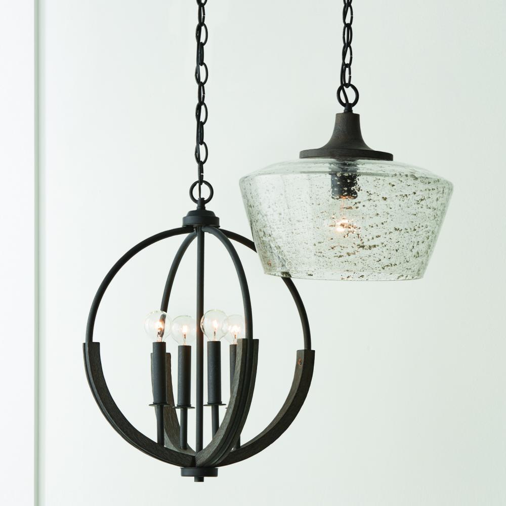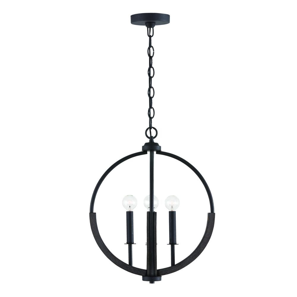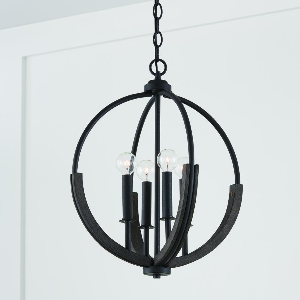 15.5"W x 20"H 4-Light Pendant in Carbon Grey and Black Iron with Handcrafted of Mango Wood