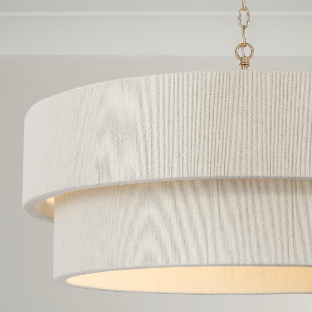 30"W x 16.25"H 4-Light Pendant in Matte Brass with Bleached Natural Rope