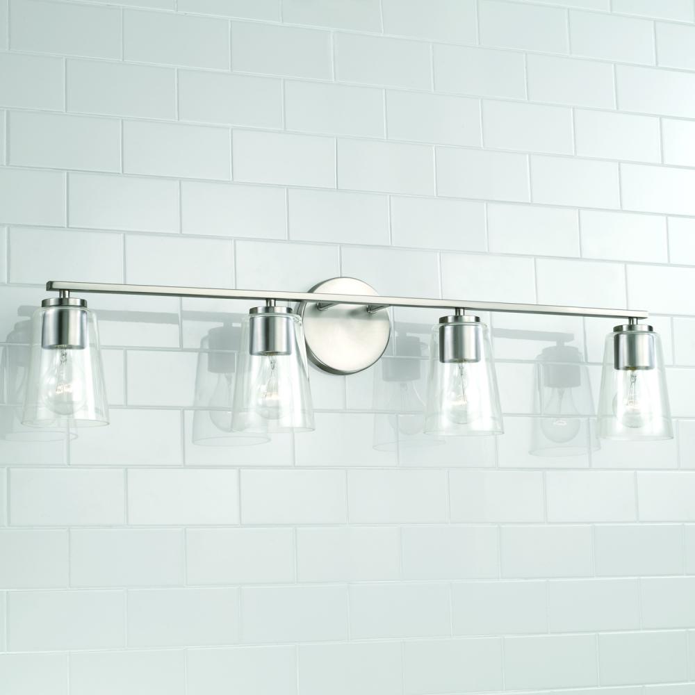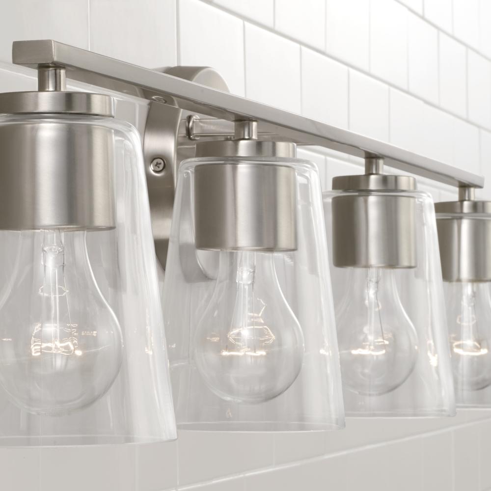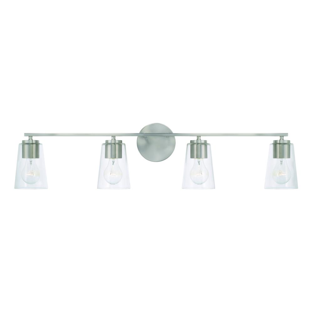 35.25"W x 8.25"H 4-Light Vanity in Brushed Nickel with Clear Glass