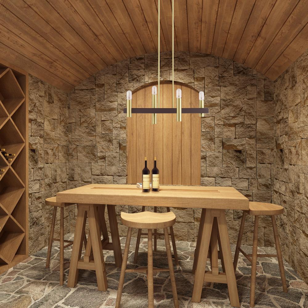 4 Lt Satin Brass & Bronze Linear Chandelier