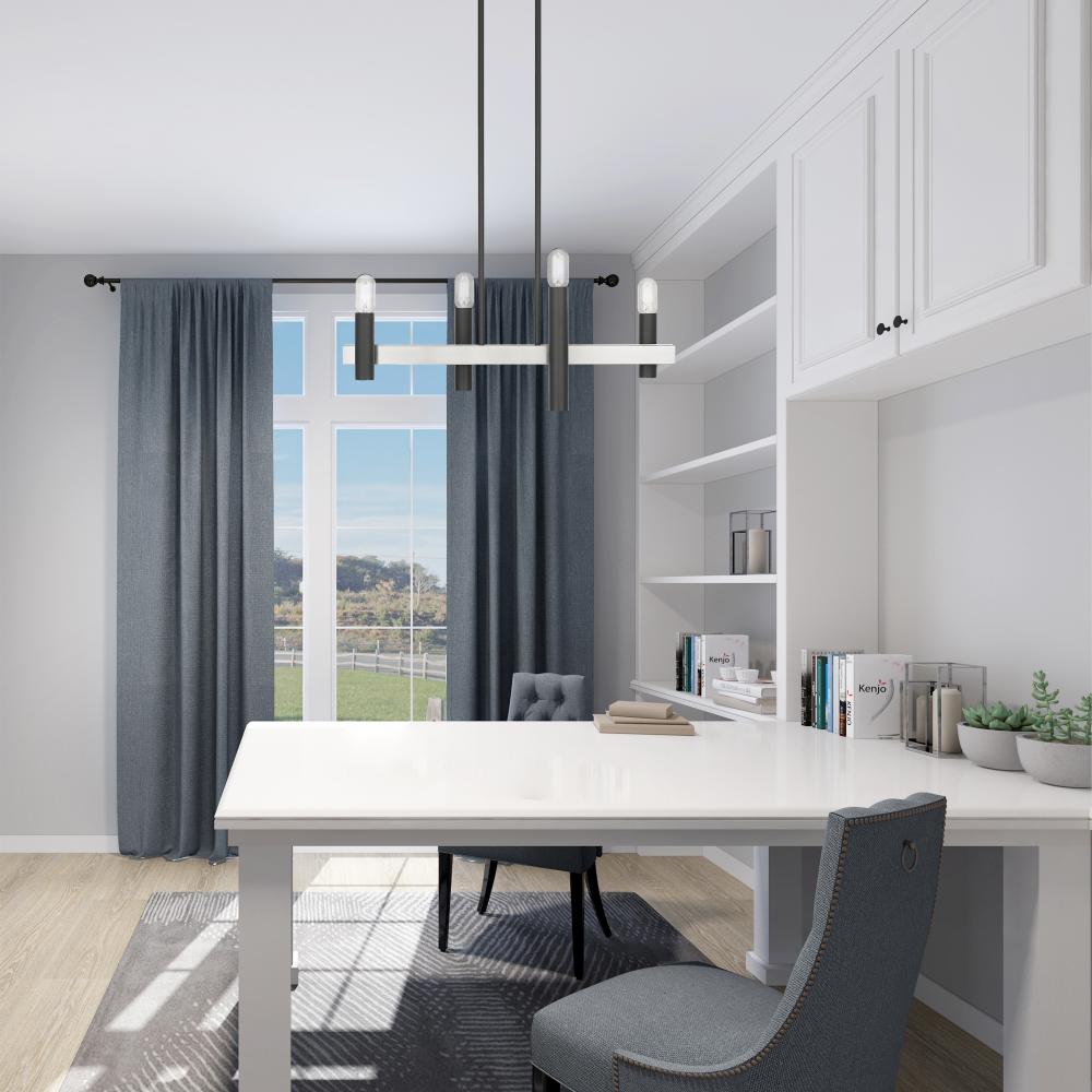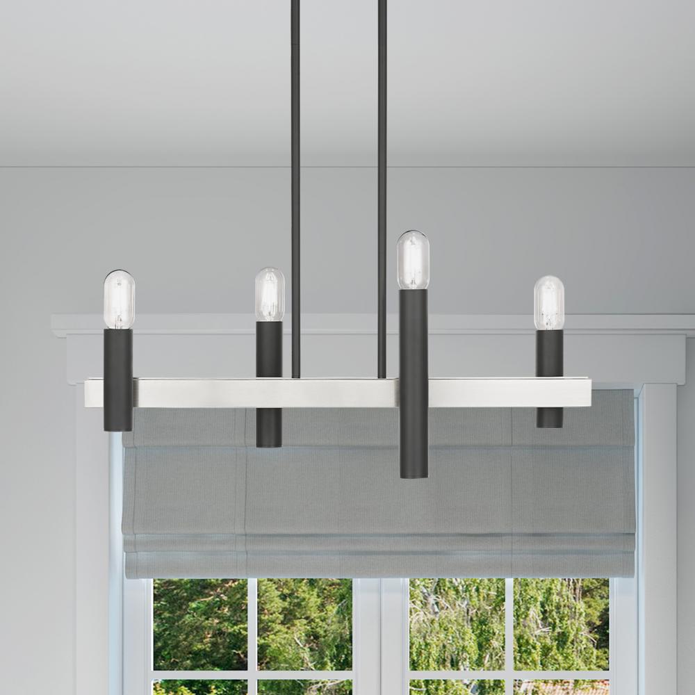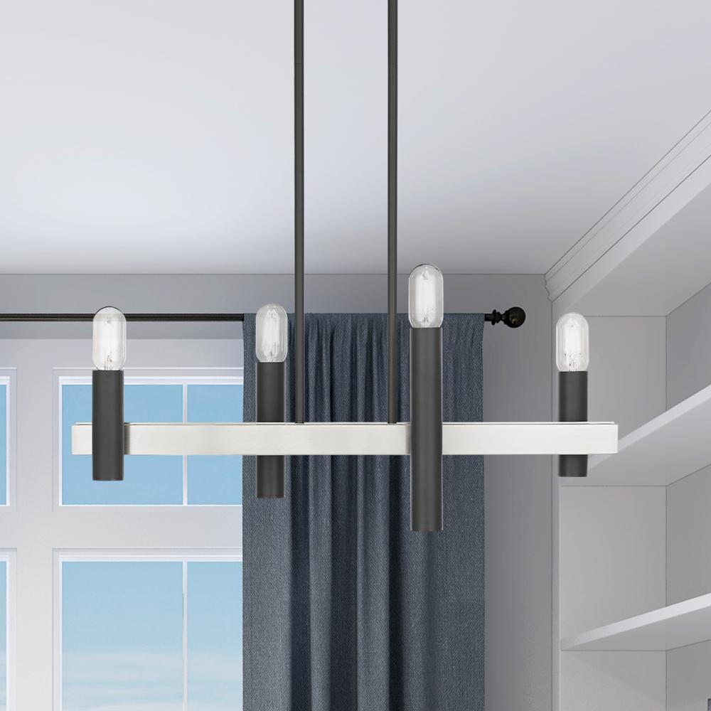 4 Lt Scandinavian Gray & Brushed Nickel Linear Chandelier