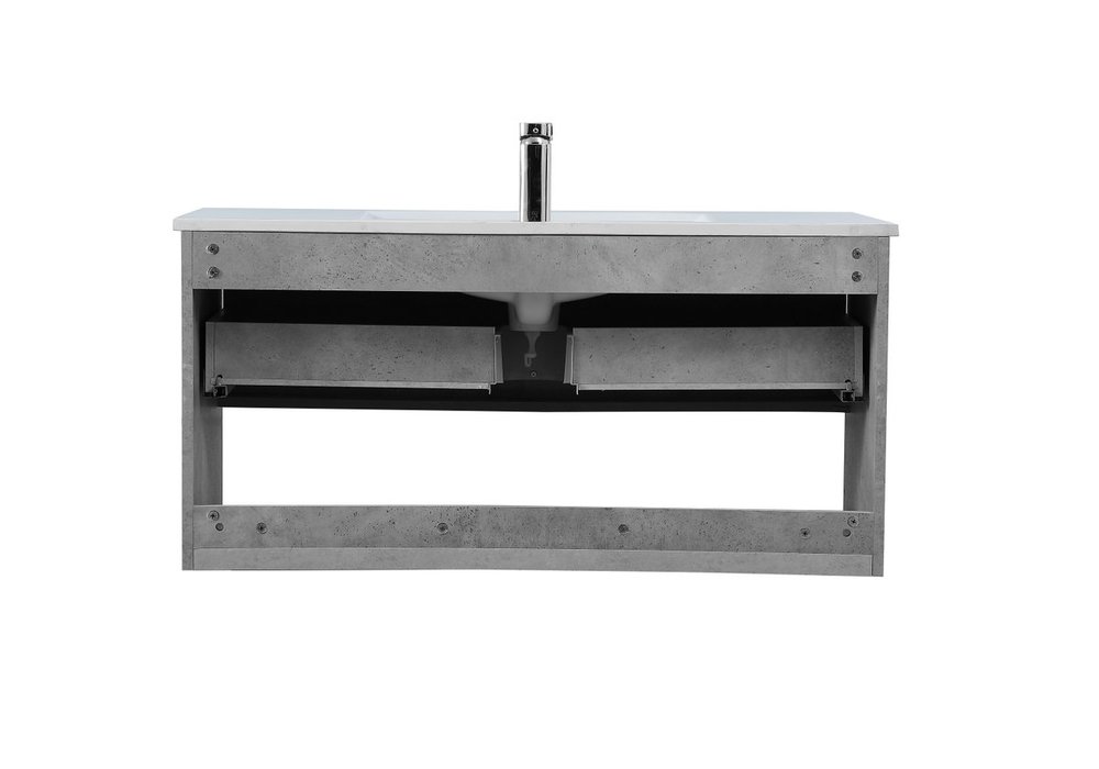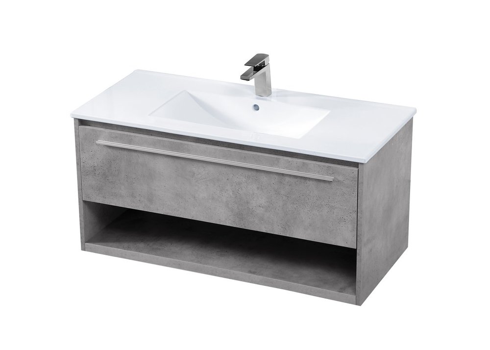 Save space and make your bathroom appear bigger with this 40" floating vanity in a concrete grey finish. Its minimal design will have you in awe, while its clean lines will leave your room feeling fresh and uncluttered. The Single u-drawer pulls out for storage while the open space below allows you to place extra towels or various other essentials.