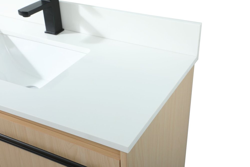 Comes with an undermount porcelain sink and durable ivory white engineered marble stone top
