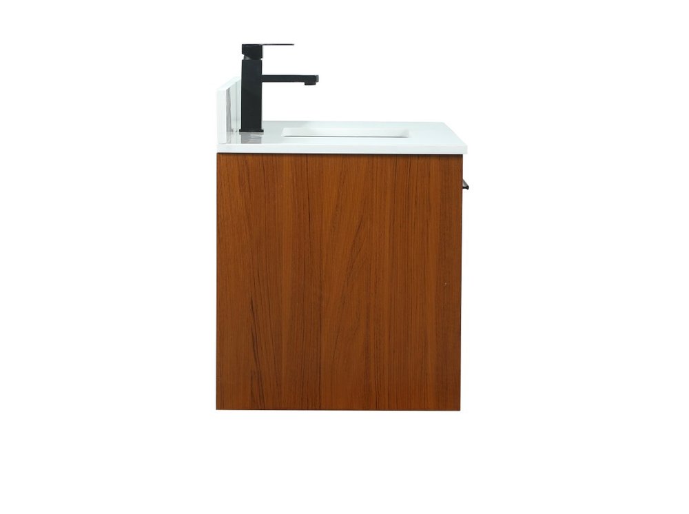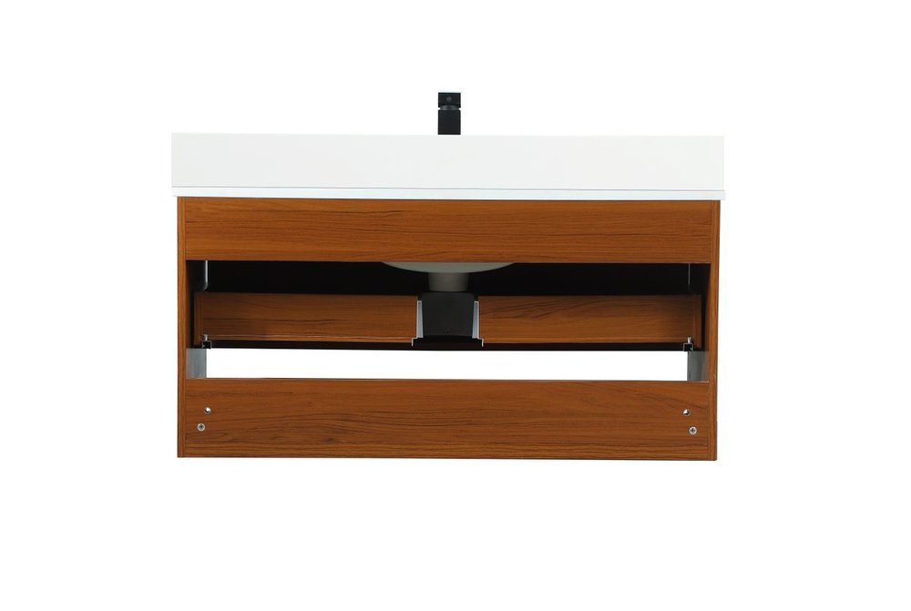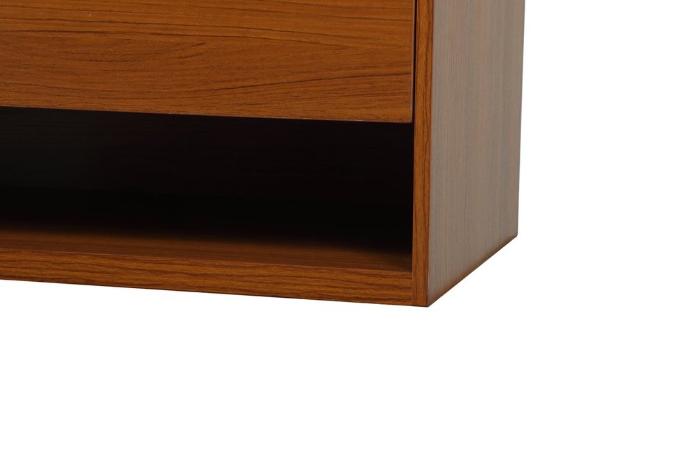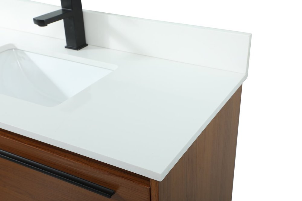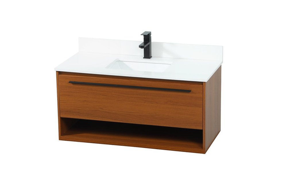 Save space and make your bathroom appear bigger with this floating vanity. Its minimal design will have you in awe, while its clean lines will leave your room feeling fresh and uncluttered. The Single u-drawer pulls out for storage while the open space below allows you to place extra towels or various other essentials. The ivory white engineered marble counter top with porcelain sink adds refined luxe while the aluminum barpull style handle adorn the vanity face. Comes with a matching backsplash to protect your walls.