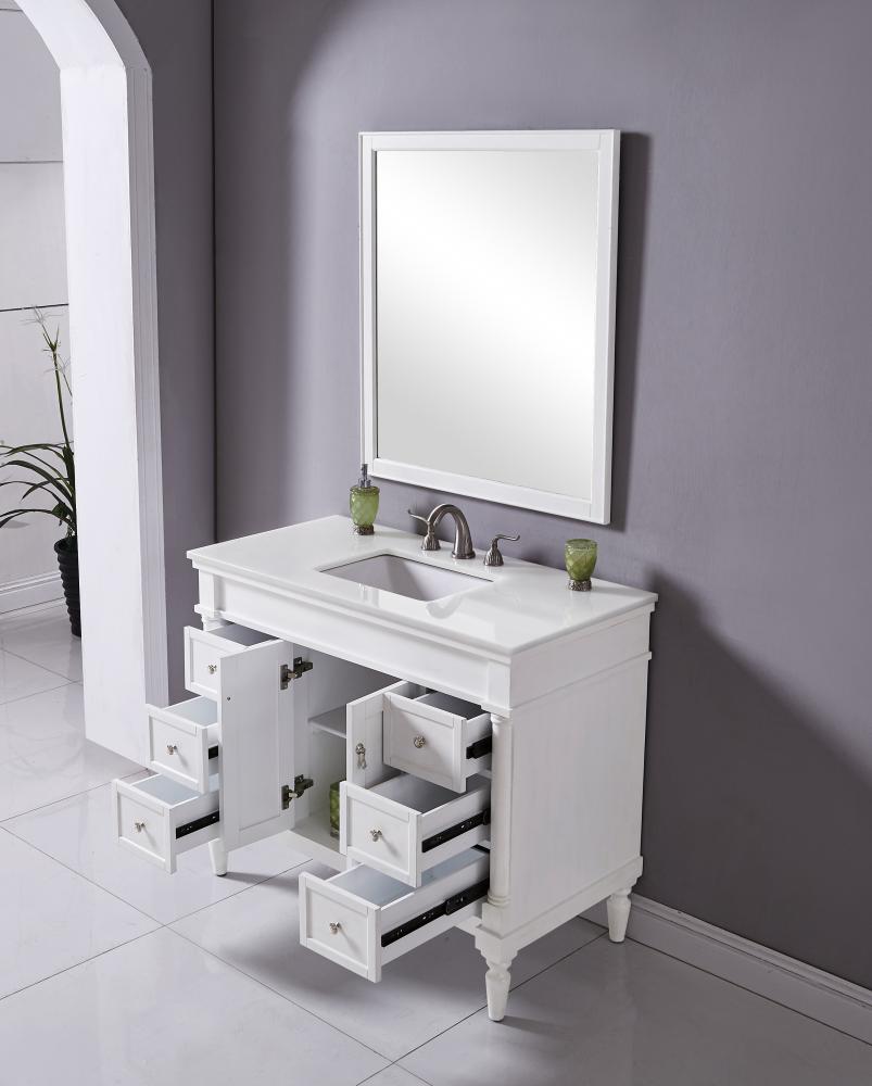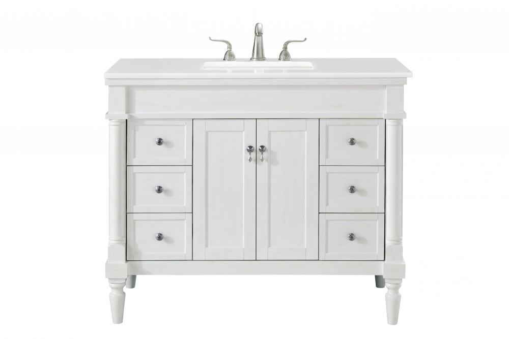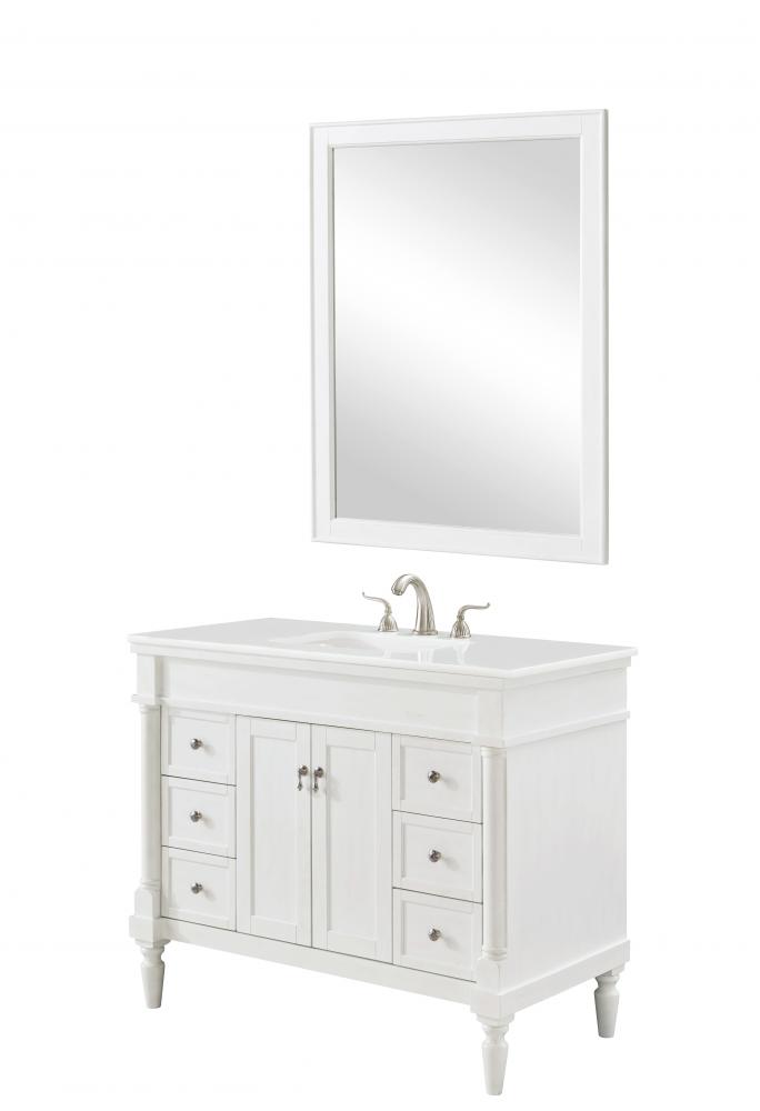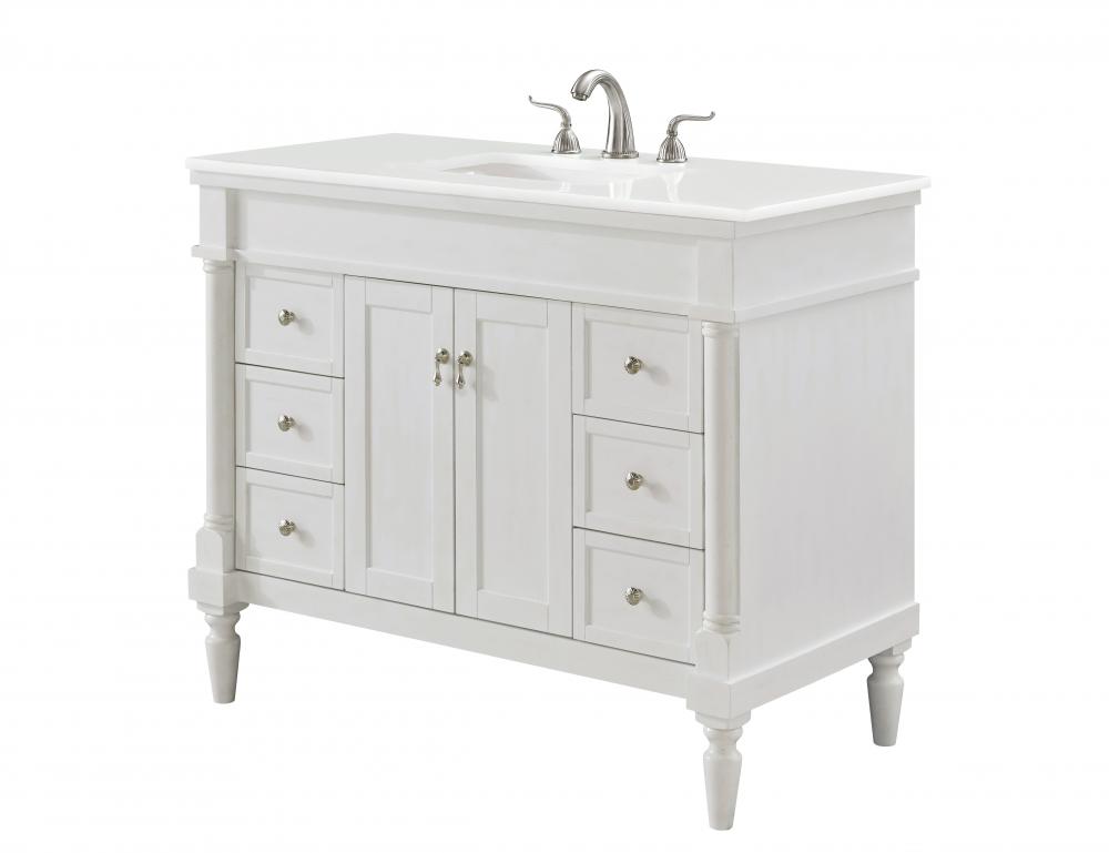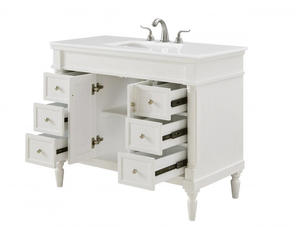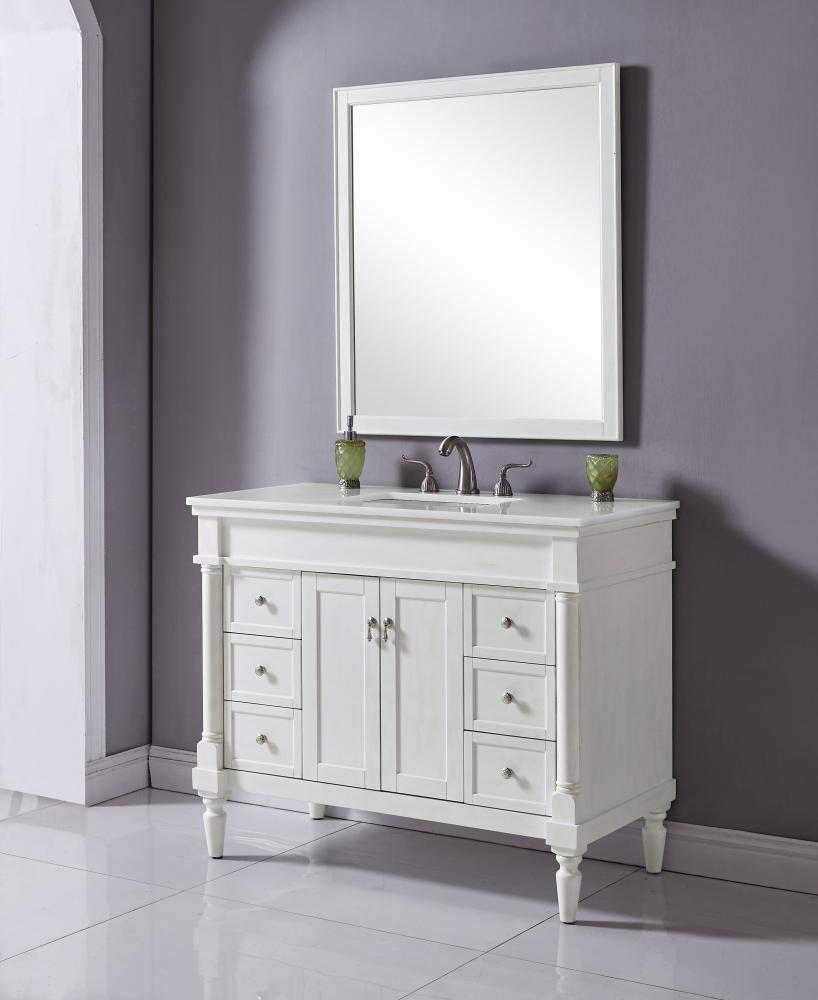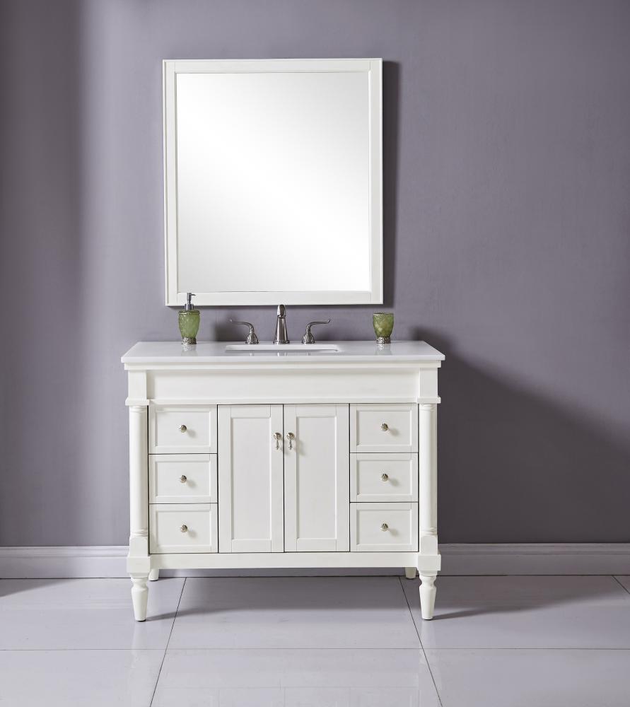 42 inch Single Bathroom vanity in Antique White with ivory white engineered marble