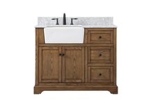 Comes with an apron porcelain sink and durable marble stone top in carrara white finish