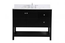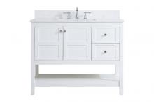 The subtle beauty of the Theo collection 42" vanity in a blue finish exudes comfortable luxury. Its modern, yet traditional beauty will surely dress up your bathroom or powder room without any fuss. The white stone countertop and porcelain undermount sink shows quiet opulence, and the legs support upright without fail. Gold hardware complements the trendy blue finish, with pulls adorning the two cabinet doors and two drawers, showcasing ample storage space within. Slated shelf allows for additional space to organize your towels. Whether this vanity is in your bathroom or for guests, its presence will surely elevate the aesthetics of your room. Comes with a matching backsplash to complete the look and protects your wall.