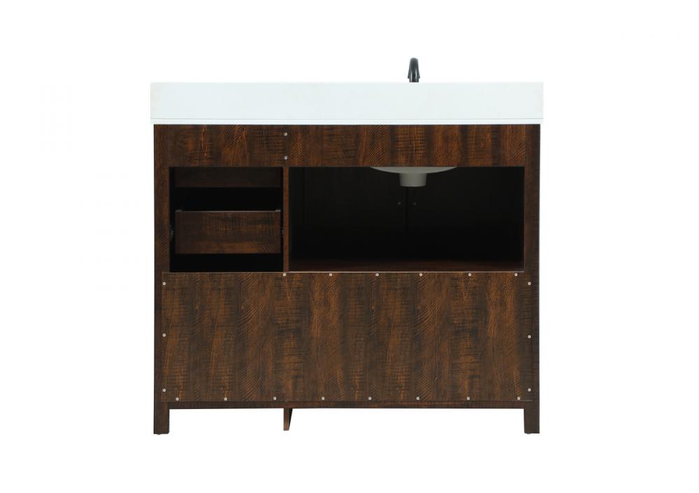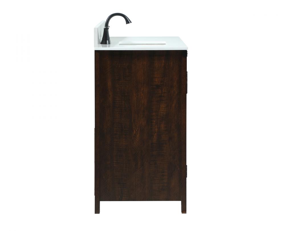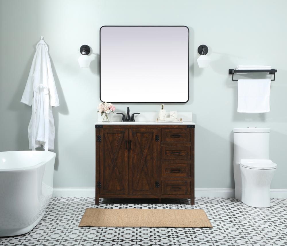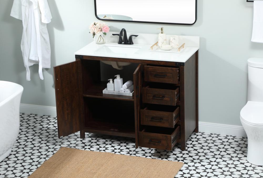 Reminiscent of barn doors, the two door cabinet and four drawers adds both stylistic charm and function with its plethora of storage options for all your bathroom essentials. Whether for your bathroom or the guests', everyone will marvel at its classic look for traditional and farmhouse aesthetics. A slab of engineered marble rounds out the piece up top, as well as the porcelain under mount sink and predrilled faucet holes. This vanity arrives fully assembled. Comes with a matching backsplash to complete the look and protects your wall.